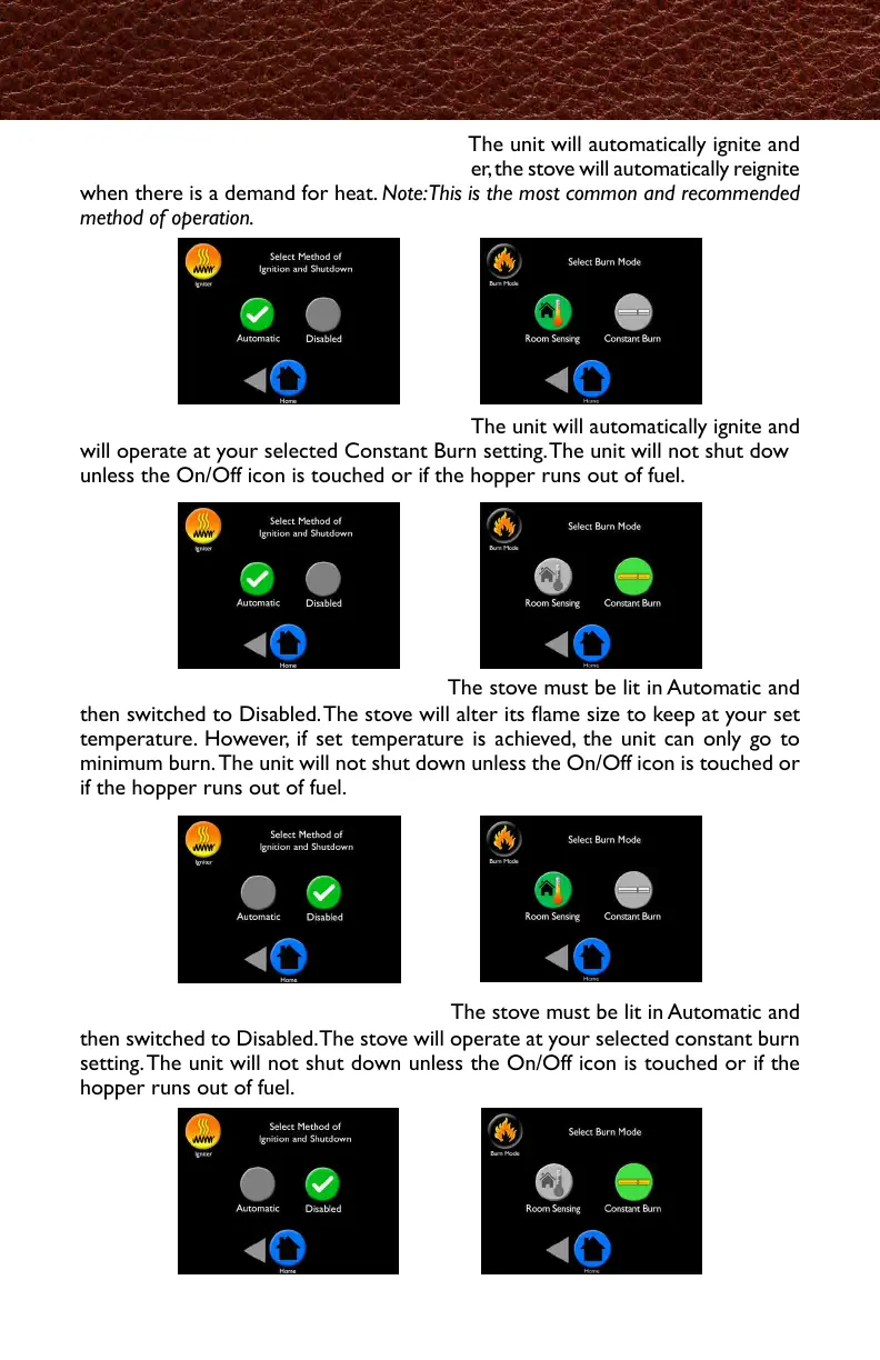 Disabled and Constant Burn mode: The stove must be lit in Automatic and