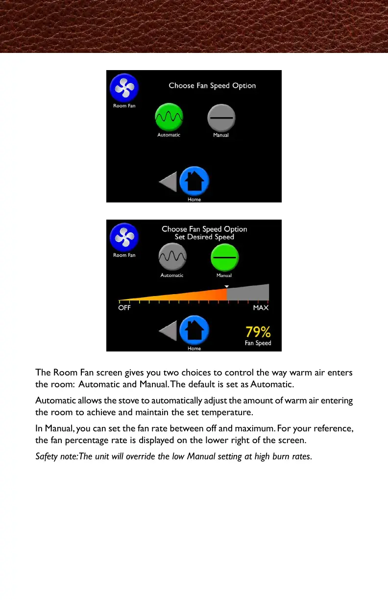 Safety note: The unit will override the low Manual setting at high burn rates.