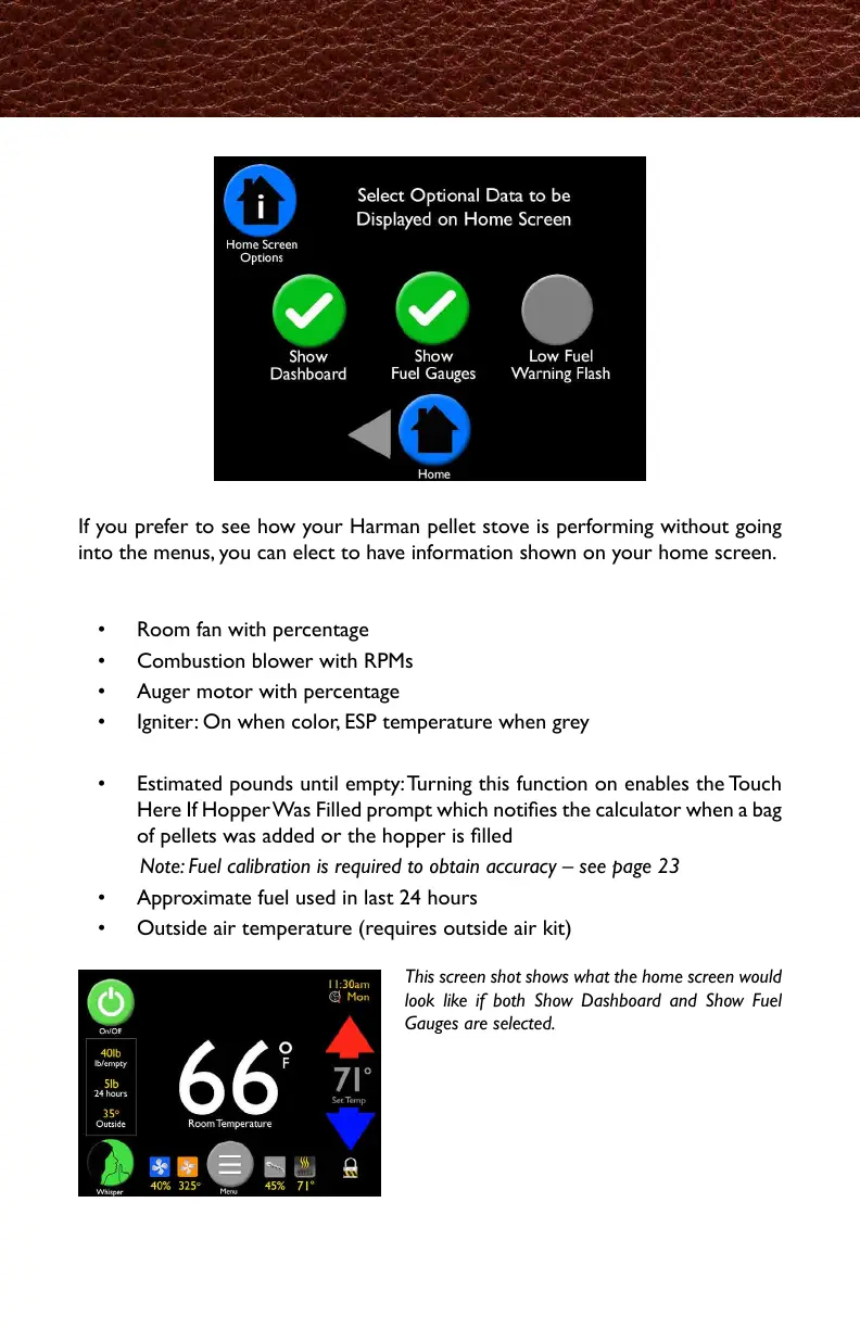 測定器がペレットの袋が追加されたか、ホッパーに燃料が追加された事を感知すると表示