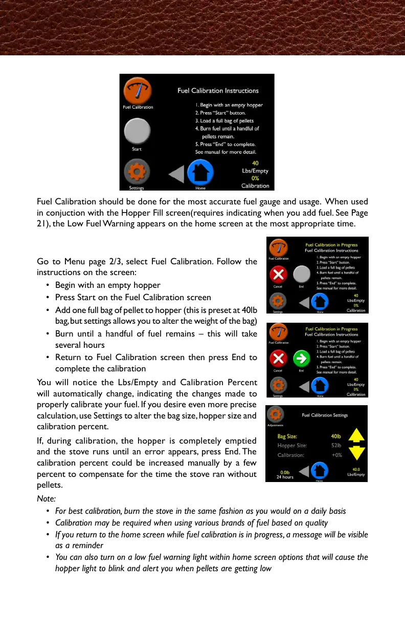 • If you return to the home screen while fuel calibration is in progress, a message will be visible