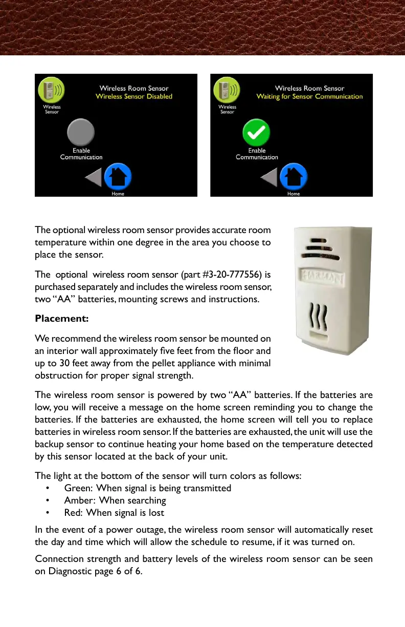 The optional wireless room sensor (part #3-20-777556) is