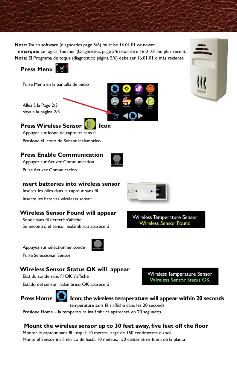 9. Press Home Icon; the wireless temperature will appear within 20 seconds