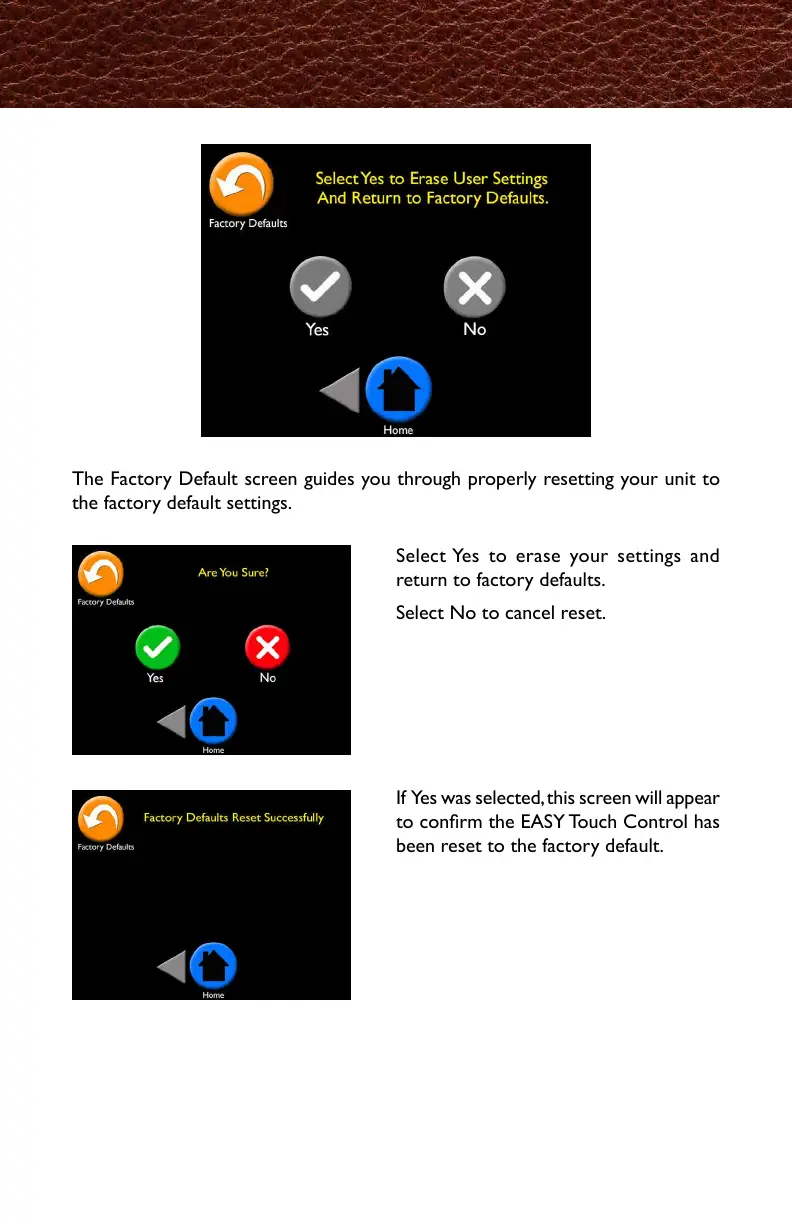 The Factory Default screen guides you through properly resetting your unit to