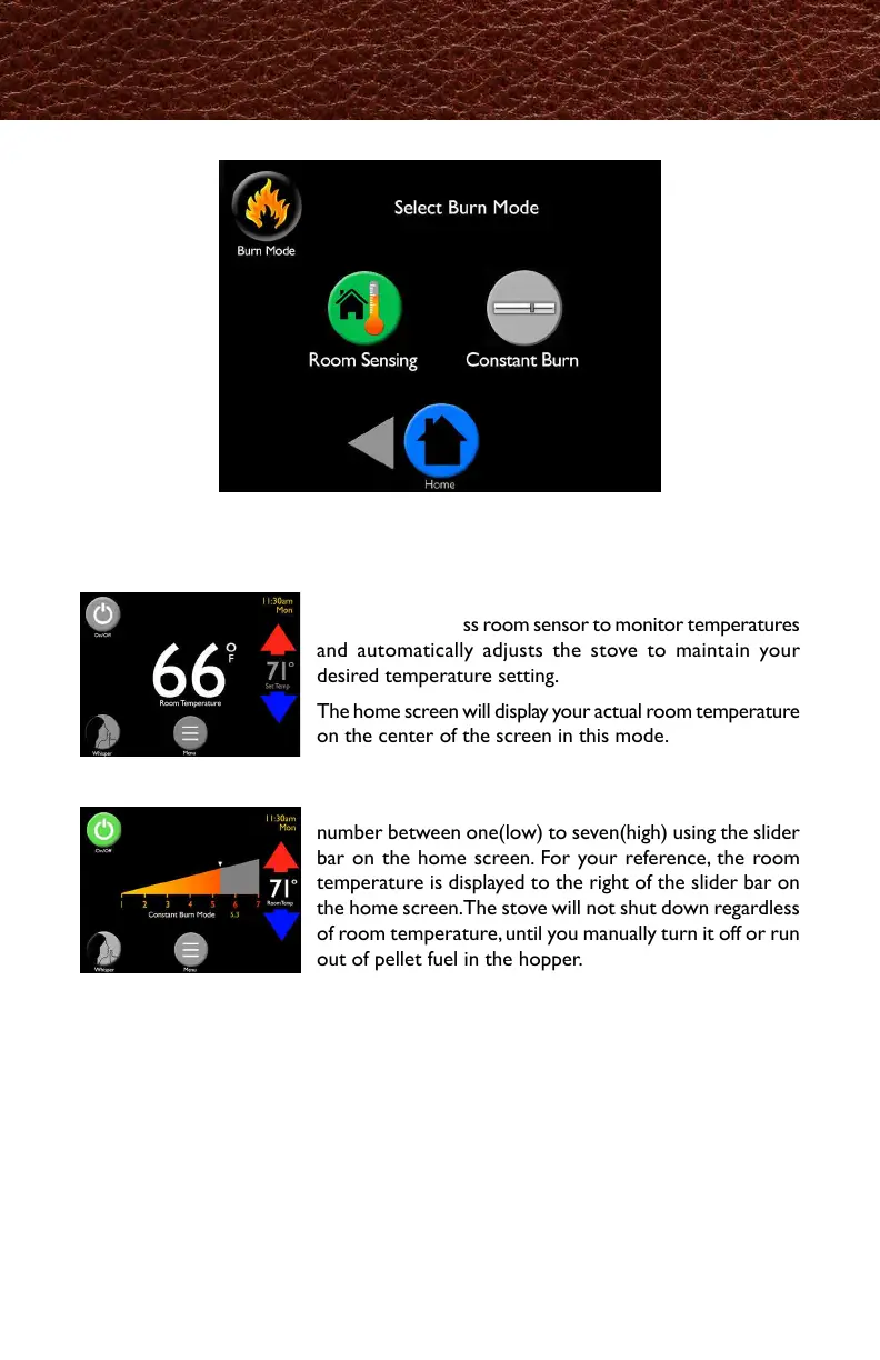 Burn Mode allows you to select how you want the stove to operate. Refer to the