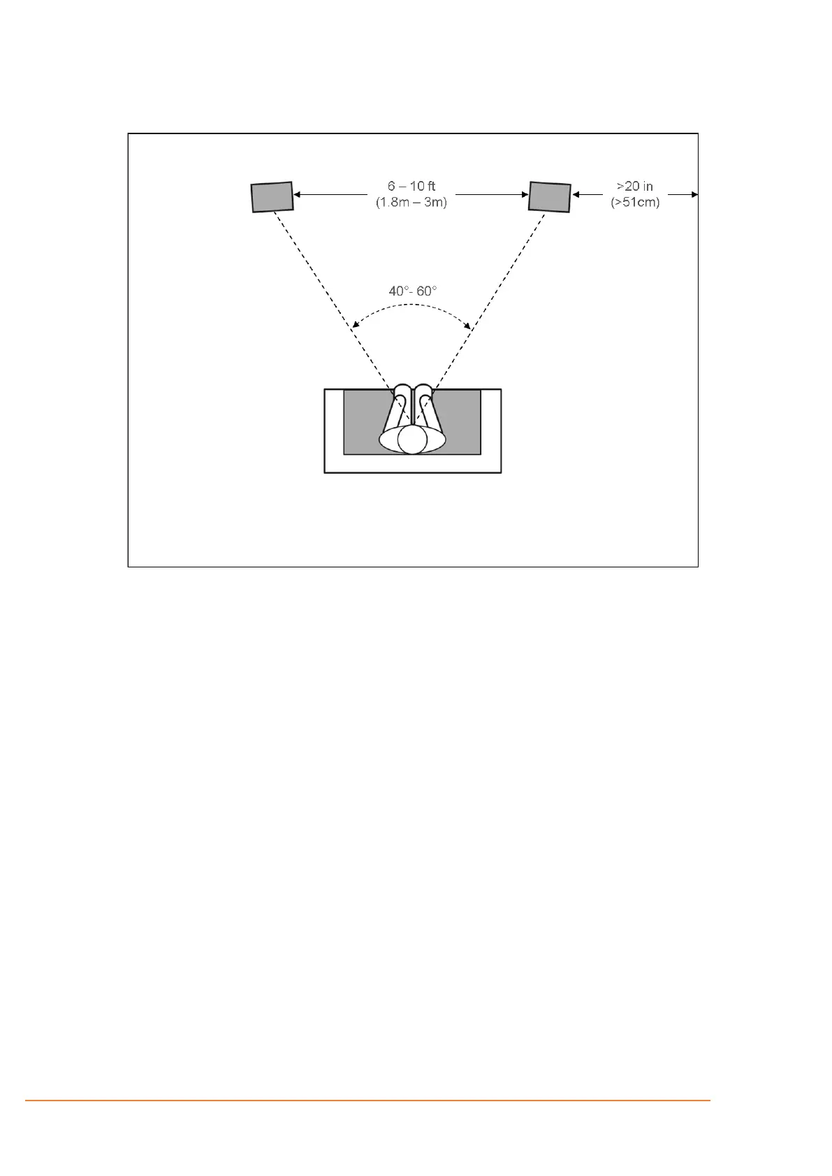 For the best results, place the speakers 6 10 feet (1.8m 3m) apart. Angling the speakers toward the listening position