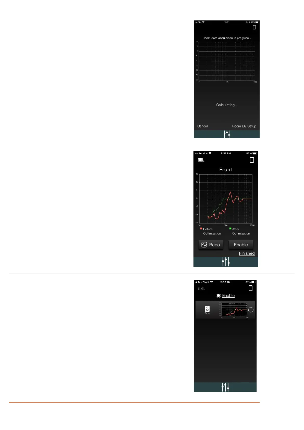 By pressing 'Enable' the green curve is activated, and the audio experience is