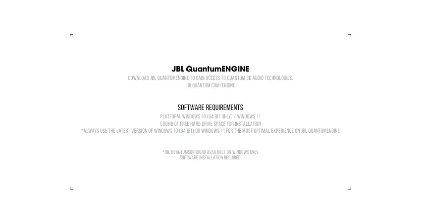 DOWNLOAD JBL QUANTUMENGINE TO GAIN ACCESS TO QUANTUM 3D AUDIO TECHNOLOGIES.