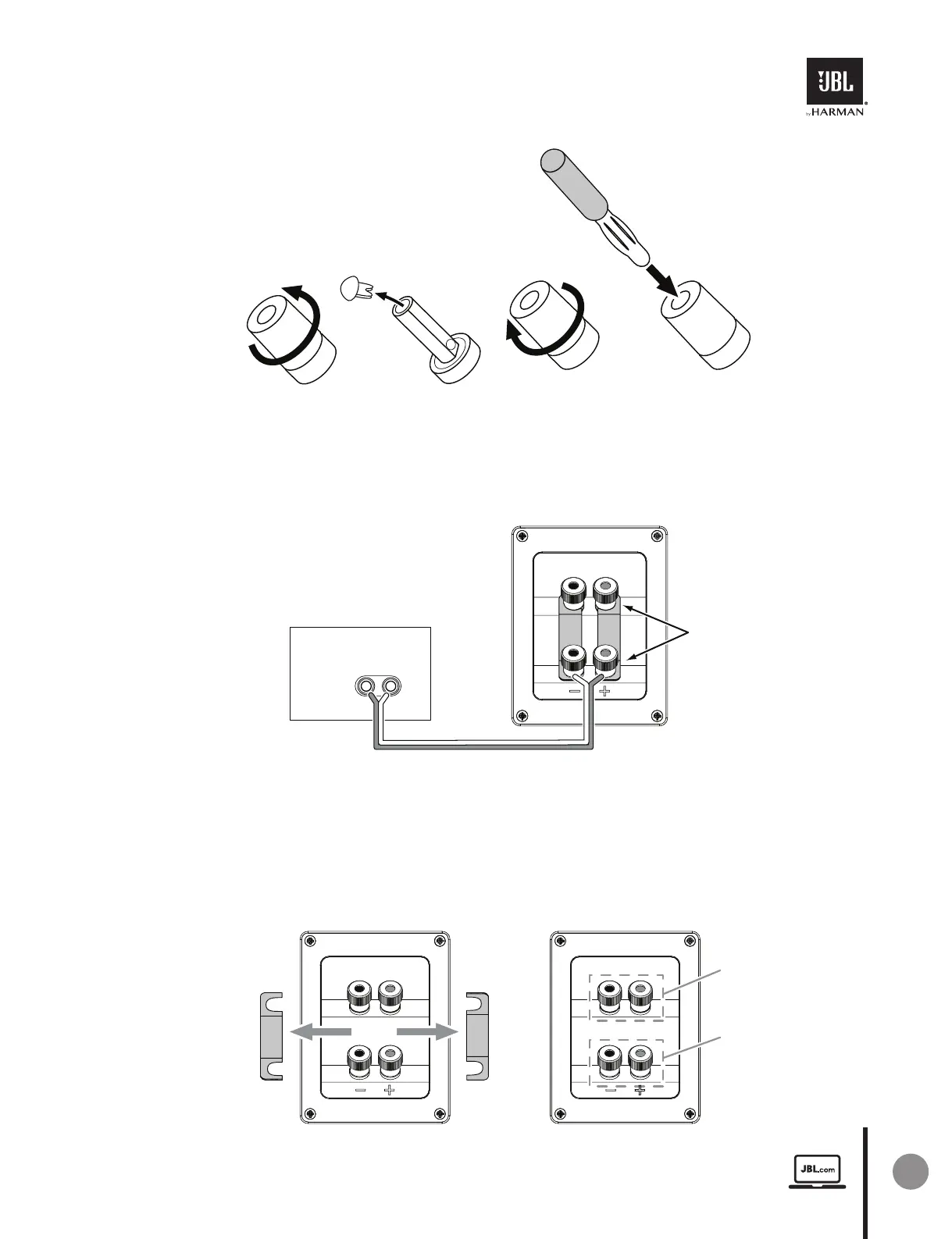 är för baselementen. Med detta arrangemang kan du ansluta högtalarna med en enda stereoförstärkare eller
