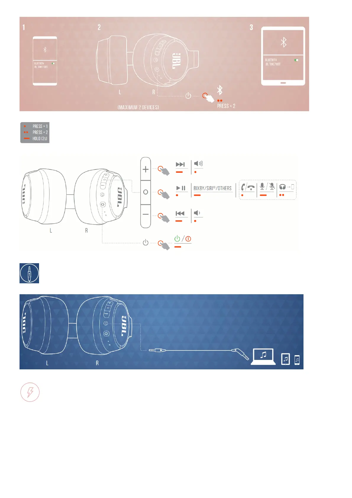 Harman JBL Tune 710 - BUTTON COMMAND; WIRED LISTENING MODE; CHARGING