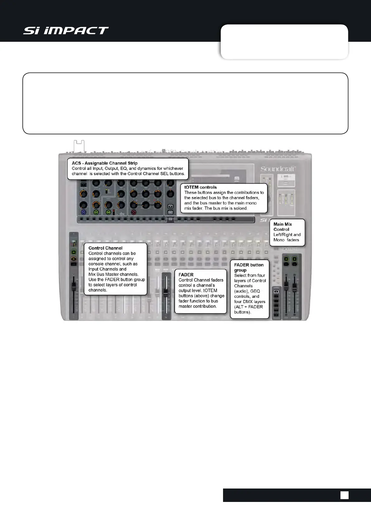 Used to control nearly all parameters on the active channel. Press a Control Channel SEL button to ‘focus’ the ACS.