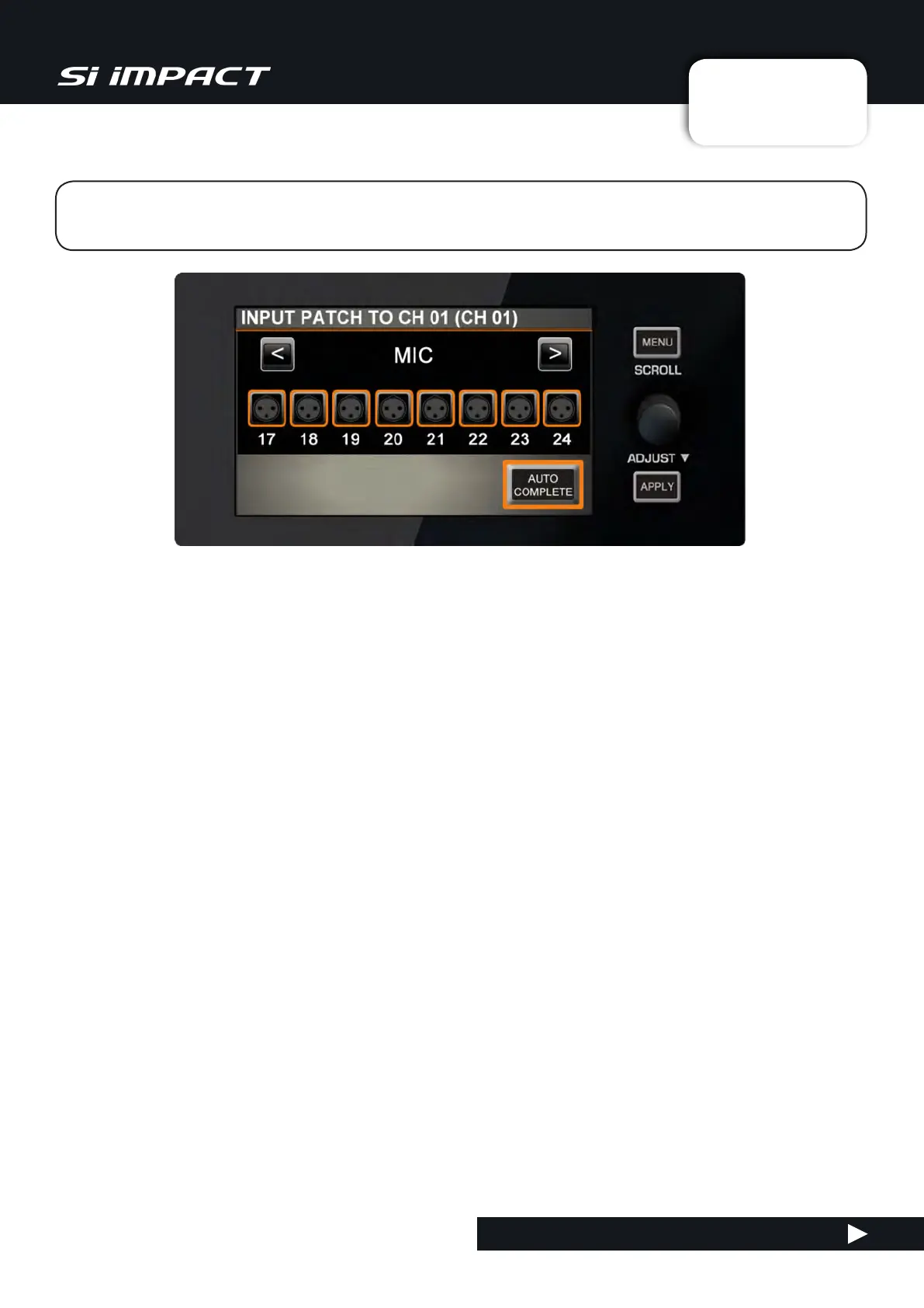 type. For example, if you start Mix Bus 9 patched to Line Out 9 then press AUTO COMPLETE, the