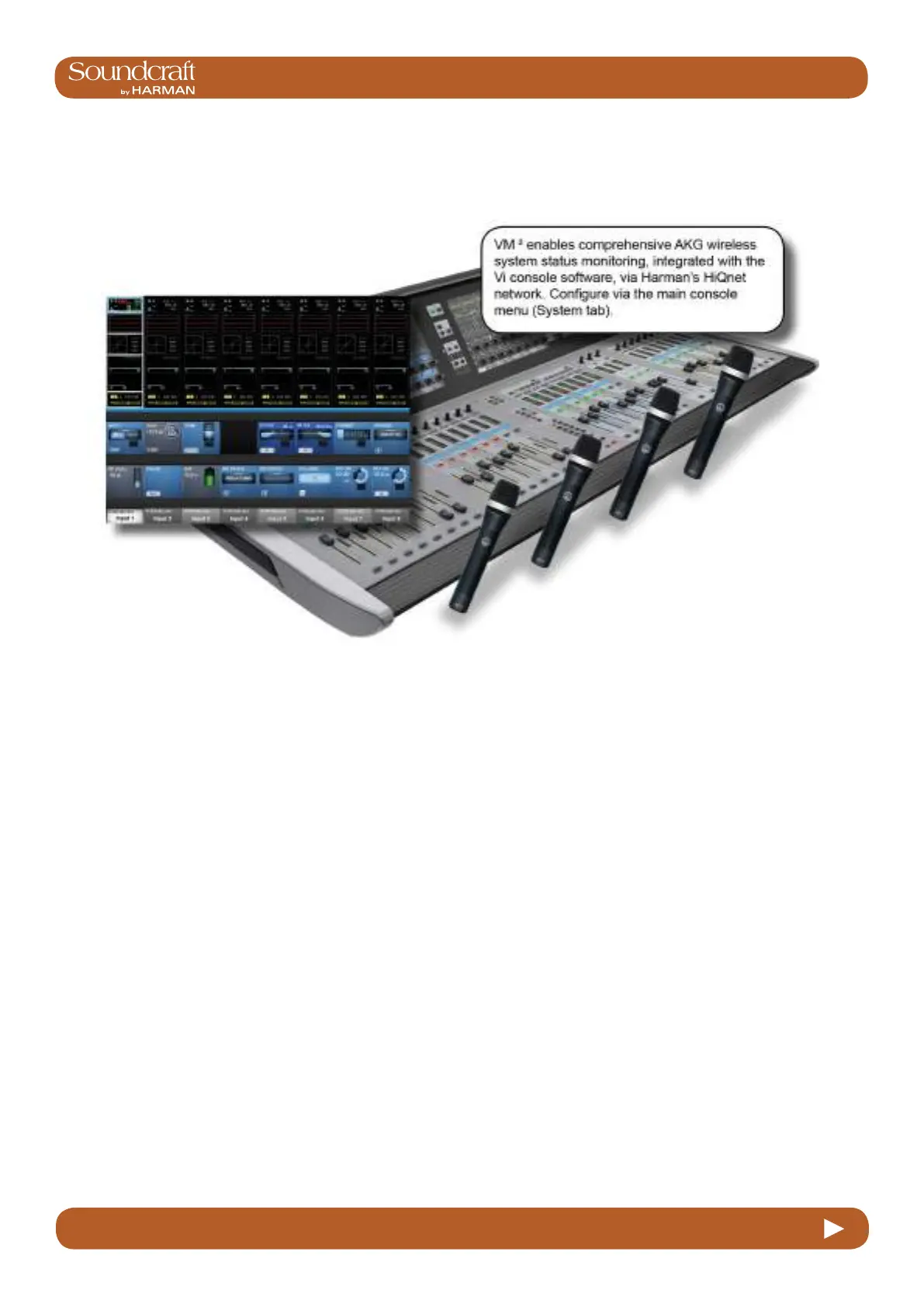 VM² is a patented feature that allows the status information for HiQnet-enabled AKG Wireless Microphone systems