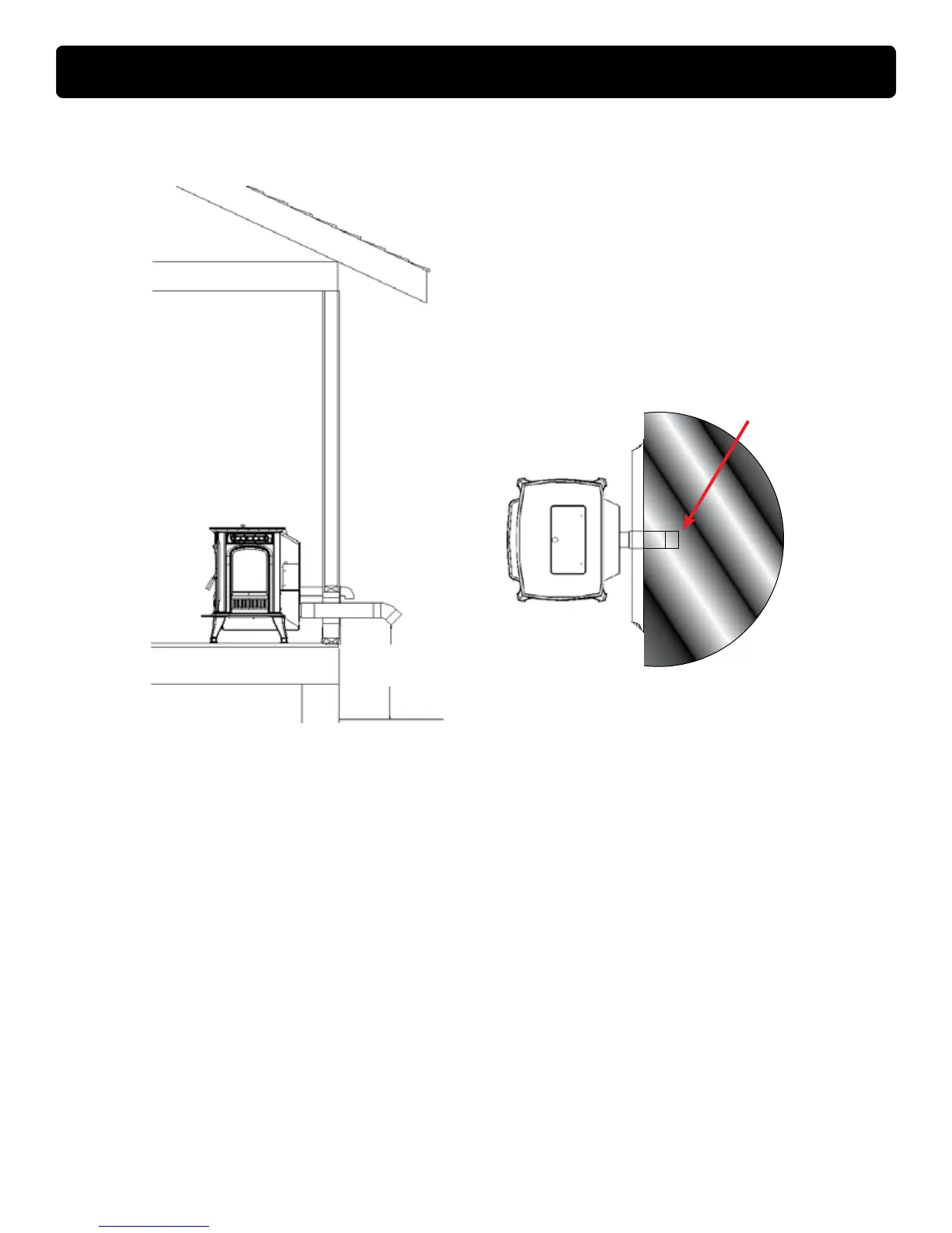 • Installing the pellet vent with a minimum vertical run of ve feet, preferably terminating above the roof line.