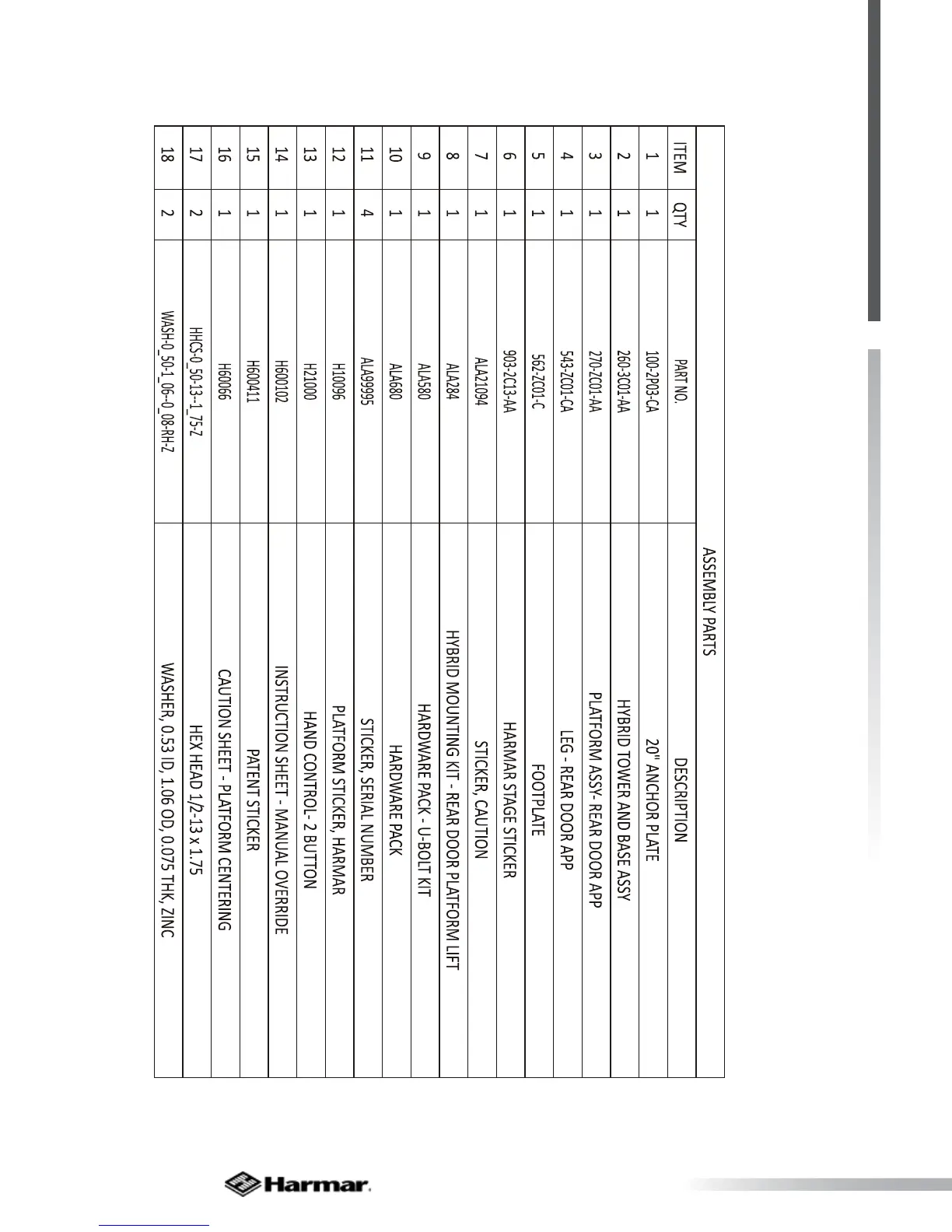 Harmar Mobility AL600 - AL600 Parts List & Assembly