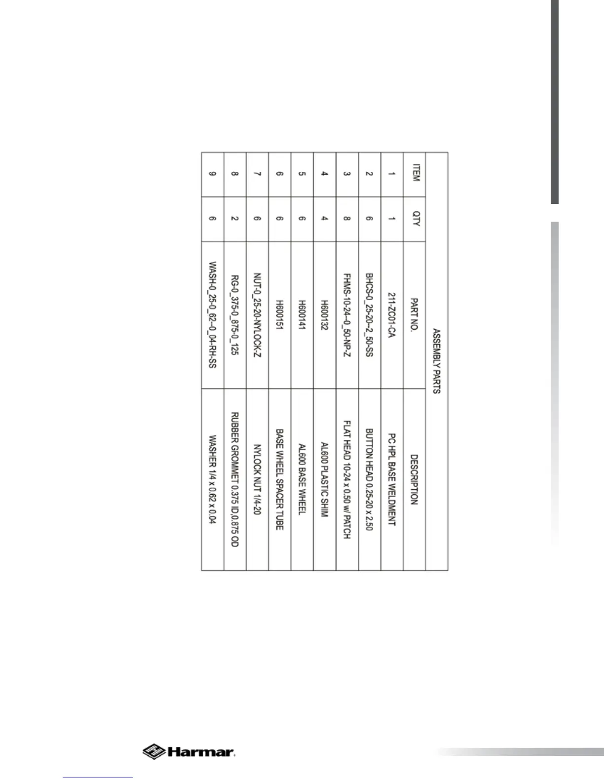 Harmar Mobility AL600 - Base Stage Parts List & Assembly