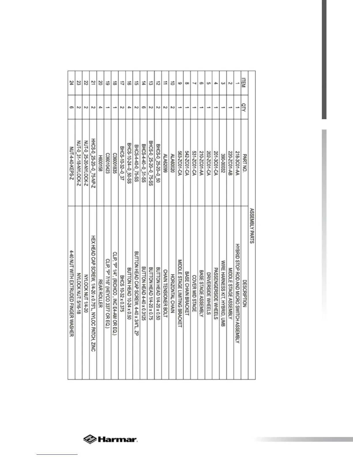 Harmar Mobility AL600 - Horizontal Parts List & Assembly