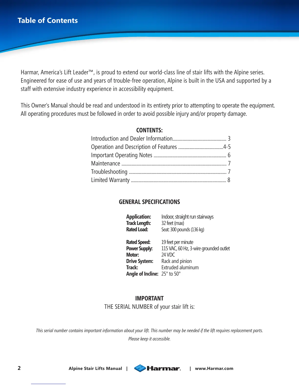 Alpine Stair Lifts Manual | | www.Harmar.com