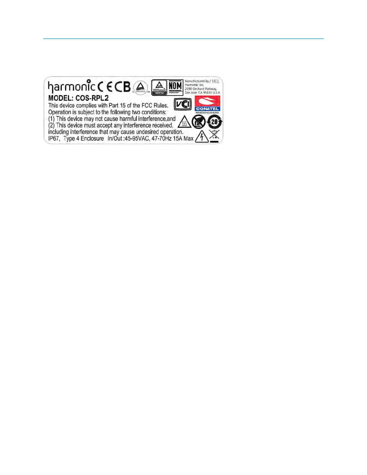 Harmonic CableOS COS-RPL2 - Product Voltage Compliance - FCC Part 15