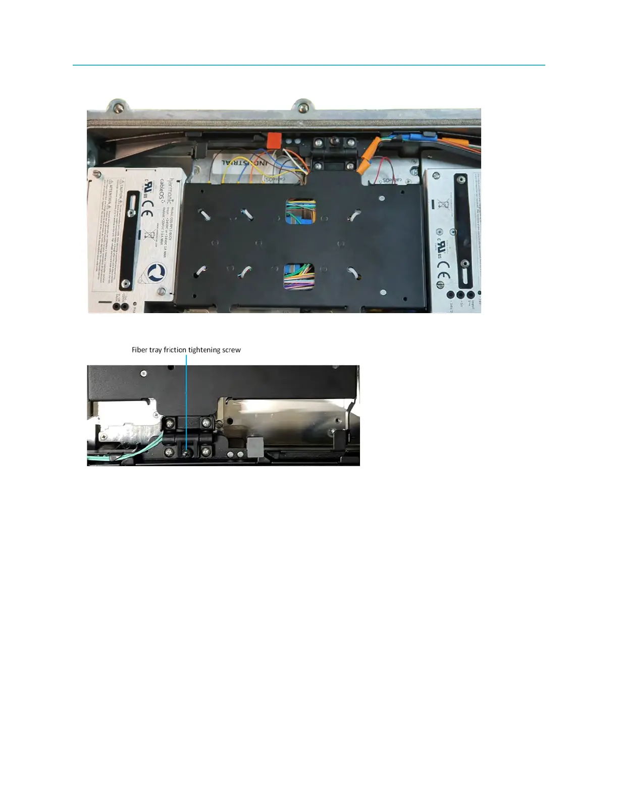 If required, adjust the motion resistance of the fiber tray using the friction tightening screw located on