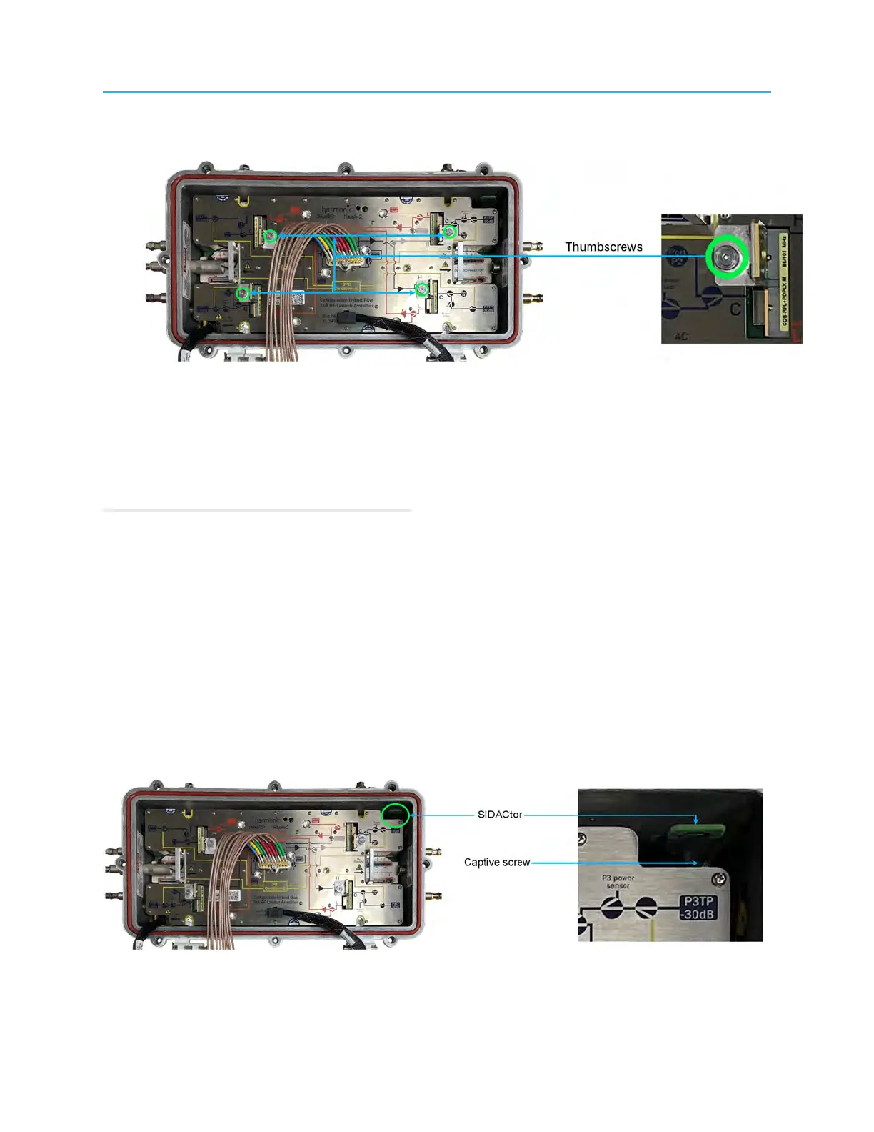 c. Finger-tighten the thumbscrew to secure diplexer filter to the RF tray - do not use any tool.
