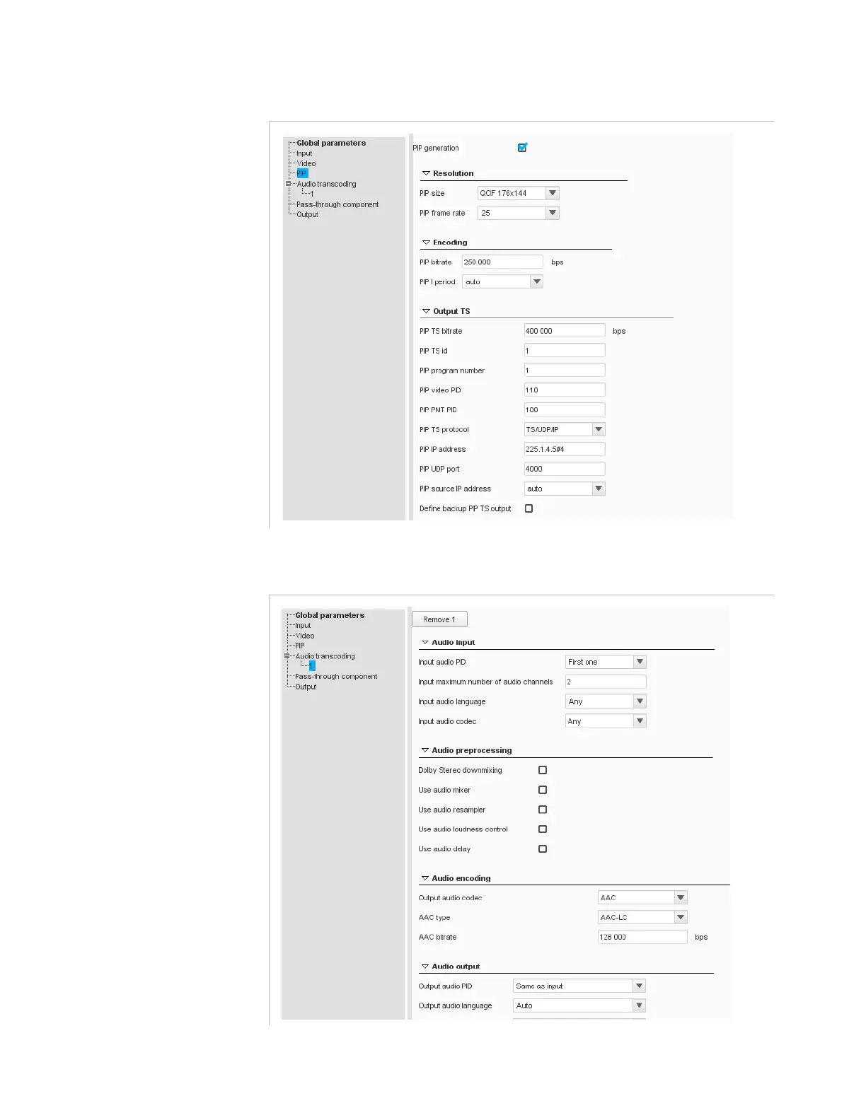Figure 3-31. Live SD-HD Transcoder job - Audio transcoding parameters