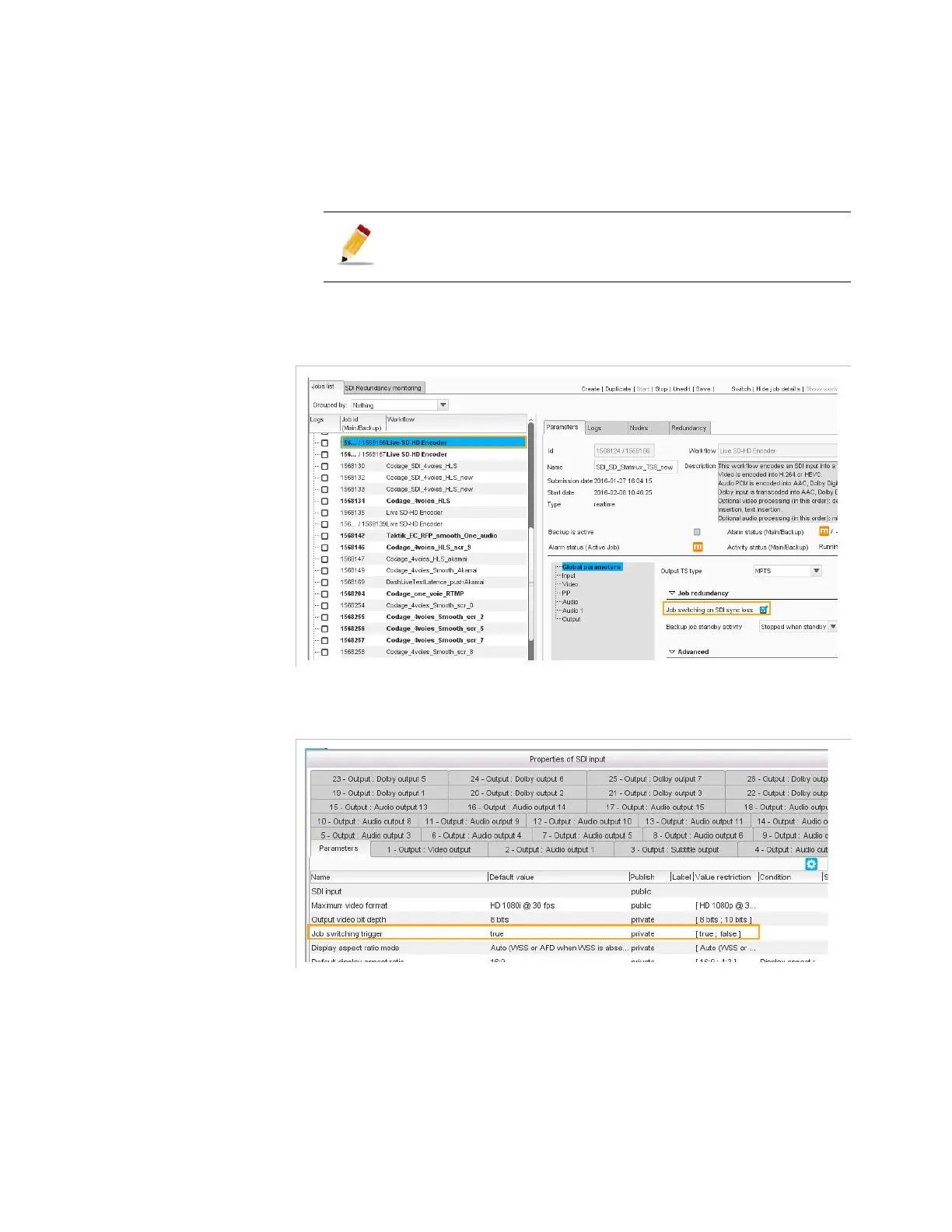 Figure 3-118. Switching trigger selection in the Live SD-HD Encoder Jobs list tab