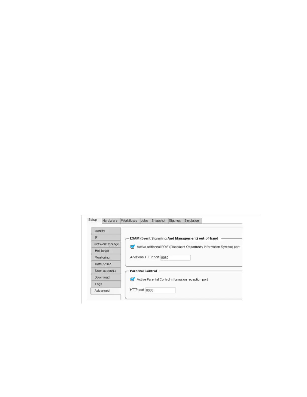 section lets you enable POIS additional UDP port (listening) port on
