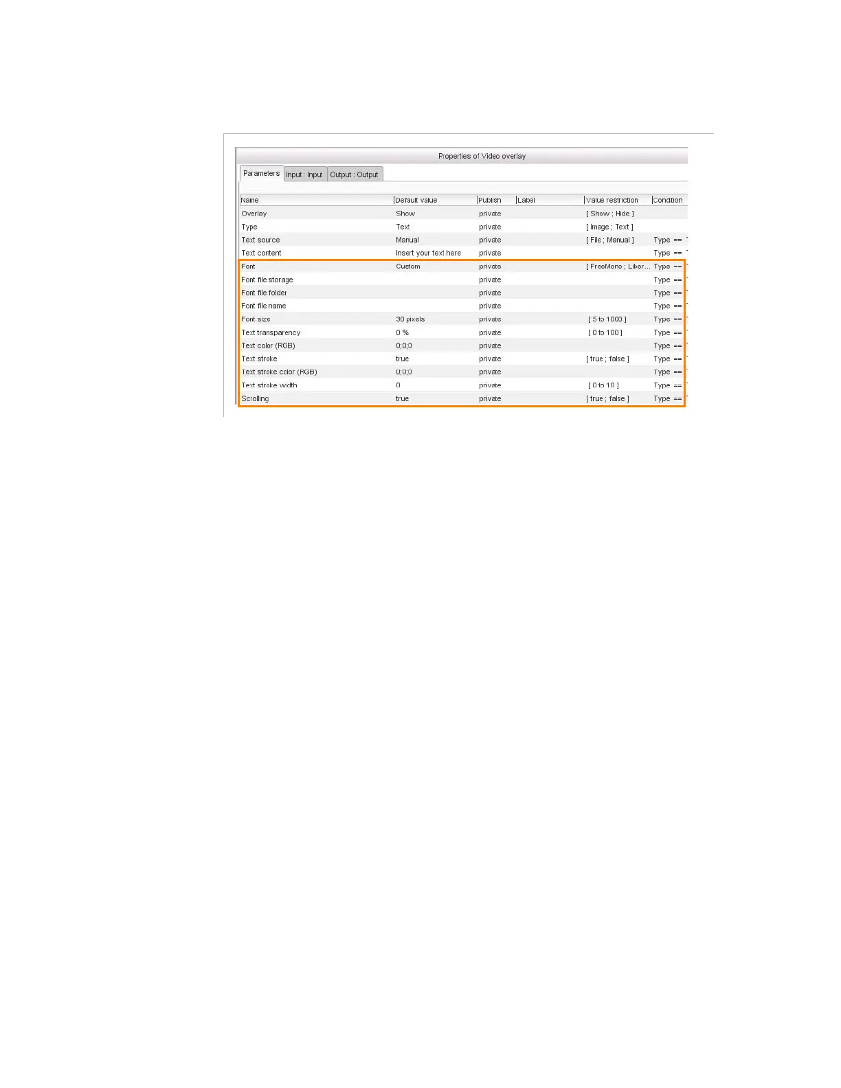 Figure 3-271. Video overlay parameters - Text insertion - text font, transparency, color,