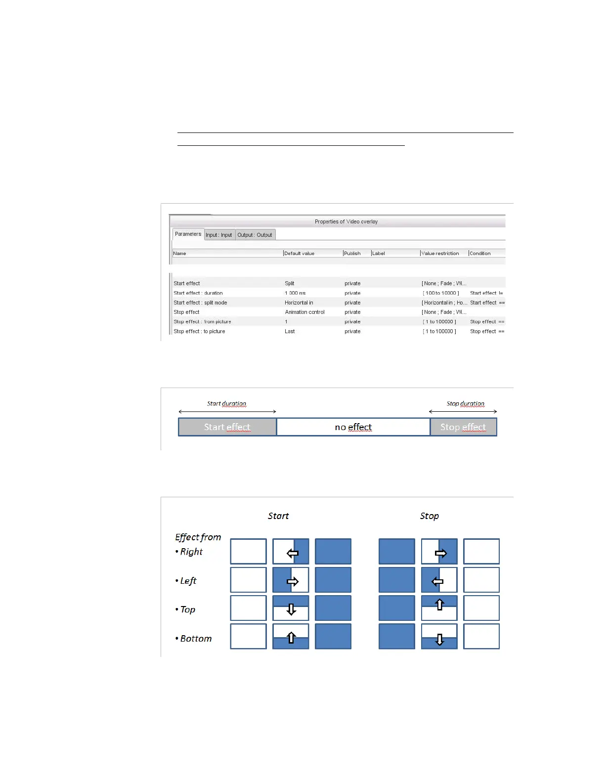 Figure 3-279. Video overlay parameters - Start or stop effects (Split and Animation