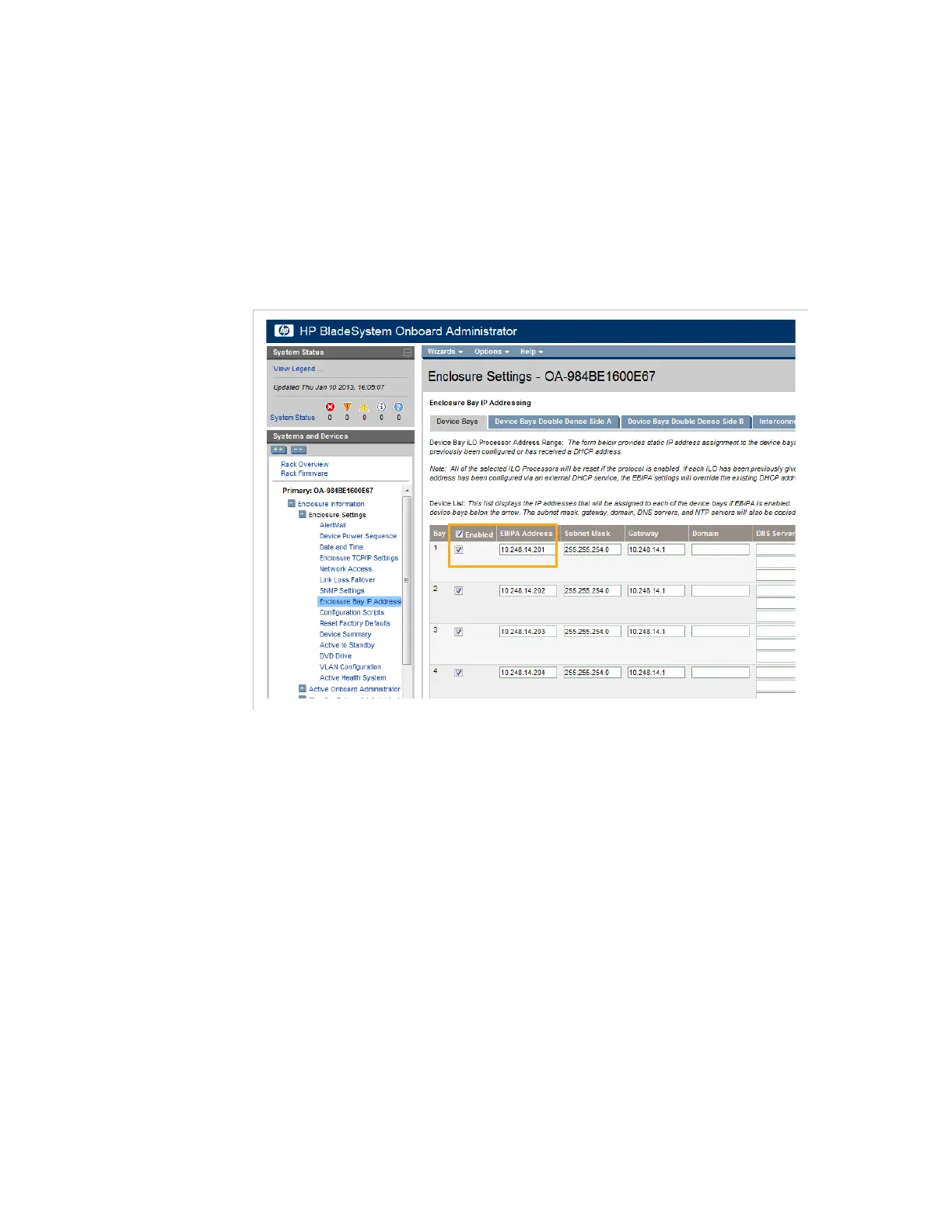 In the HP BladeSystem Onboard Administrator, click the