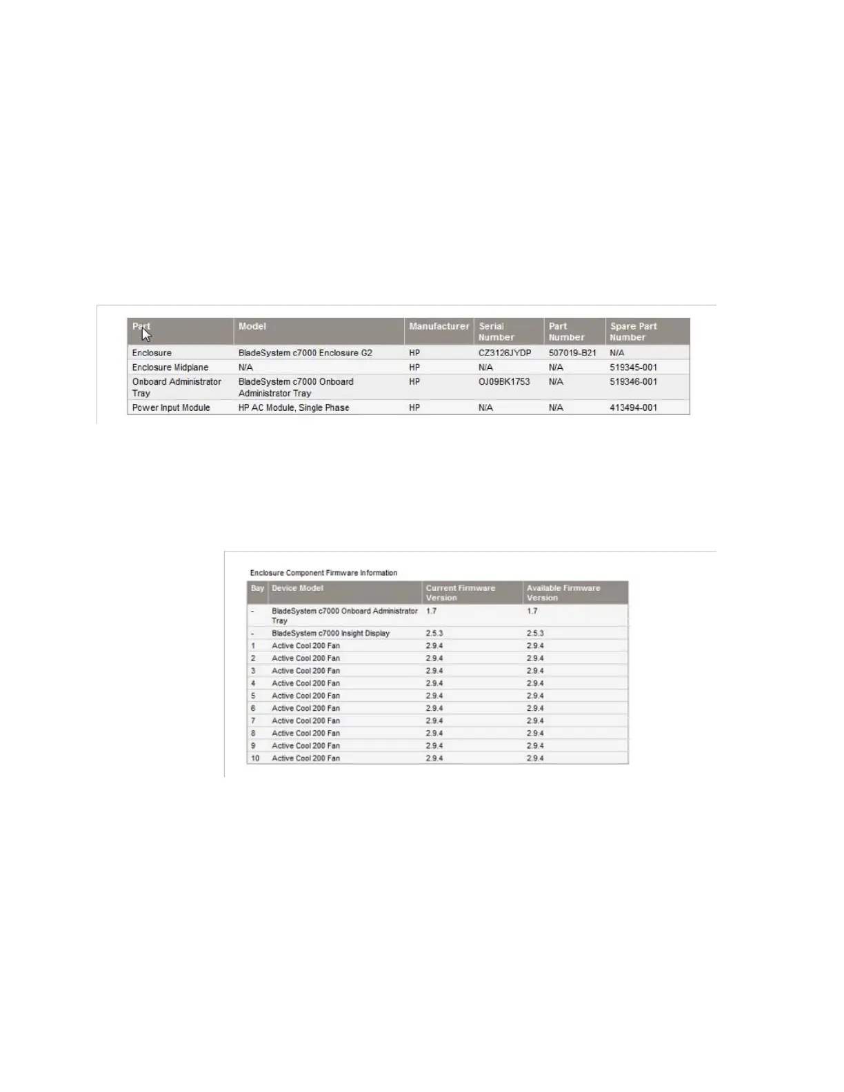 Figure 4-32. HP OnBoard Administrator page – Part Information table