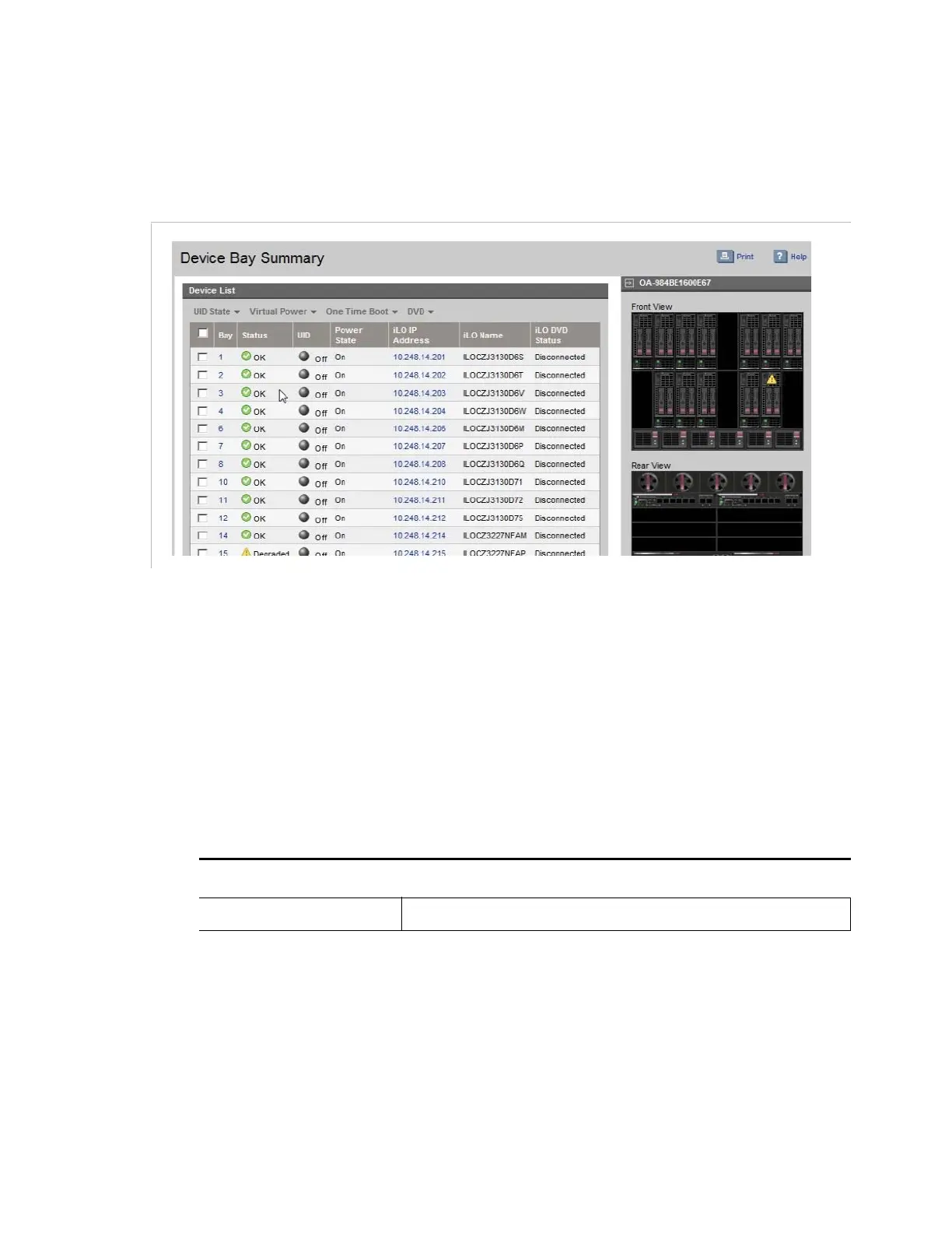 Save a screen shot of the Device Bay status view.