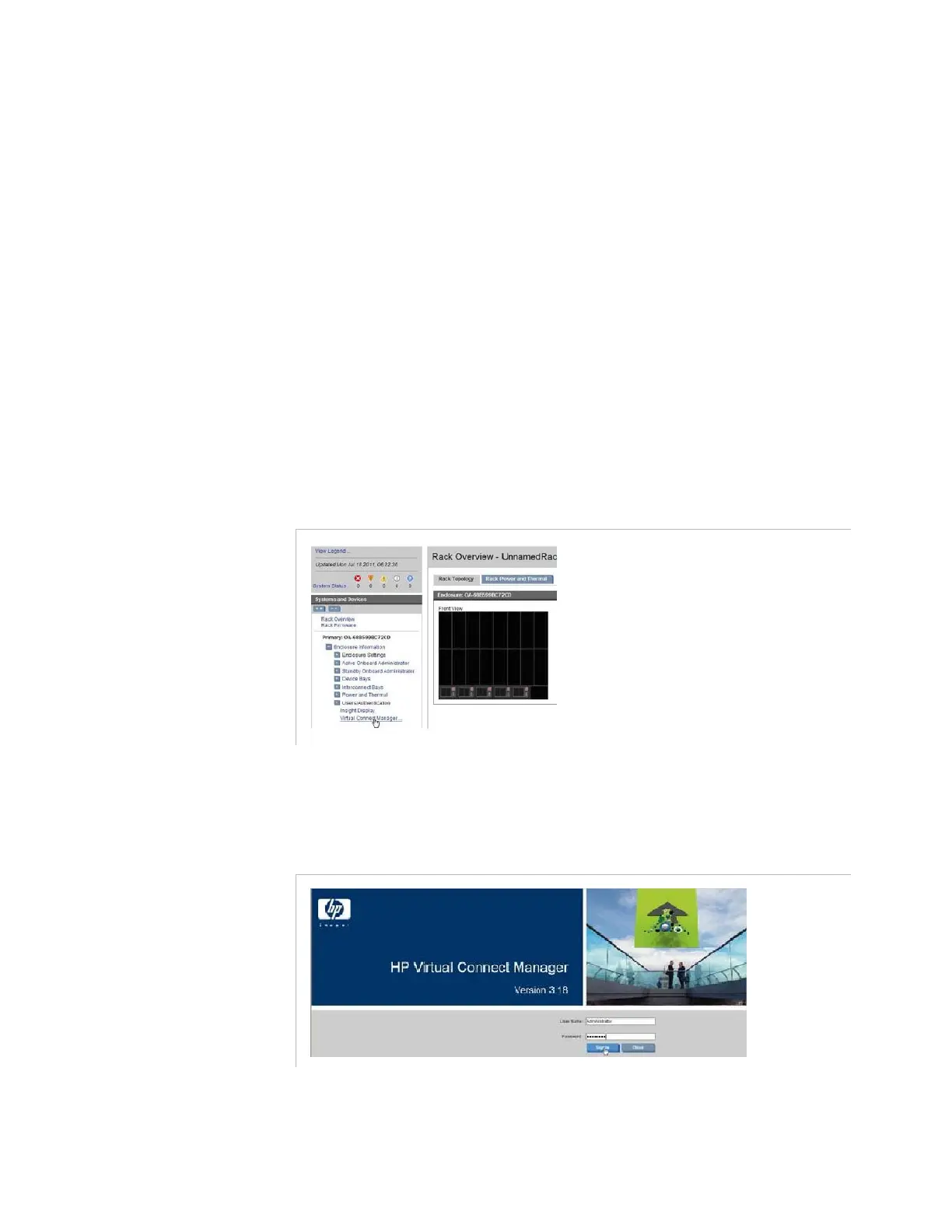 Figure 4-43. HP configuration interface – Virtual Connect Manager selection