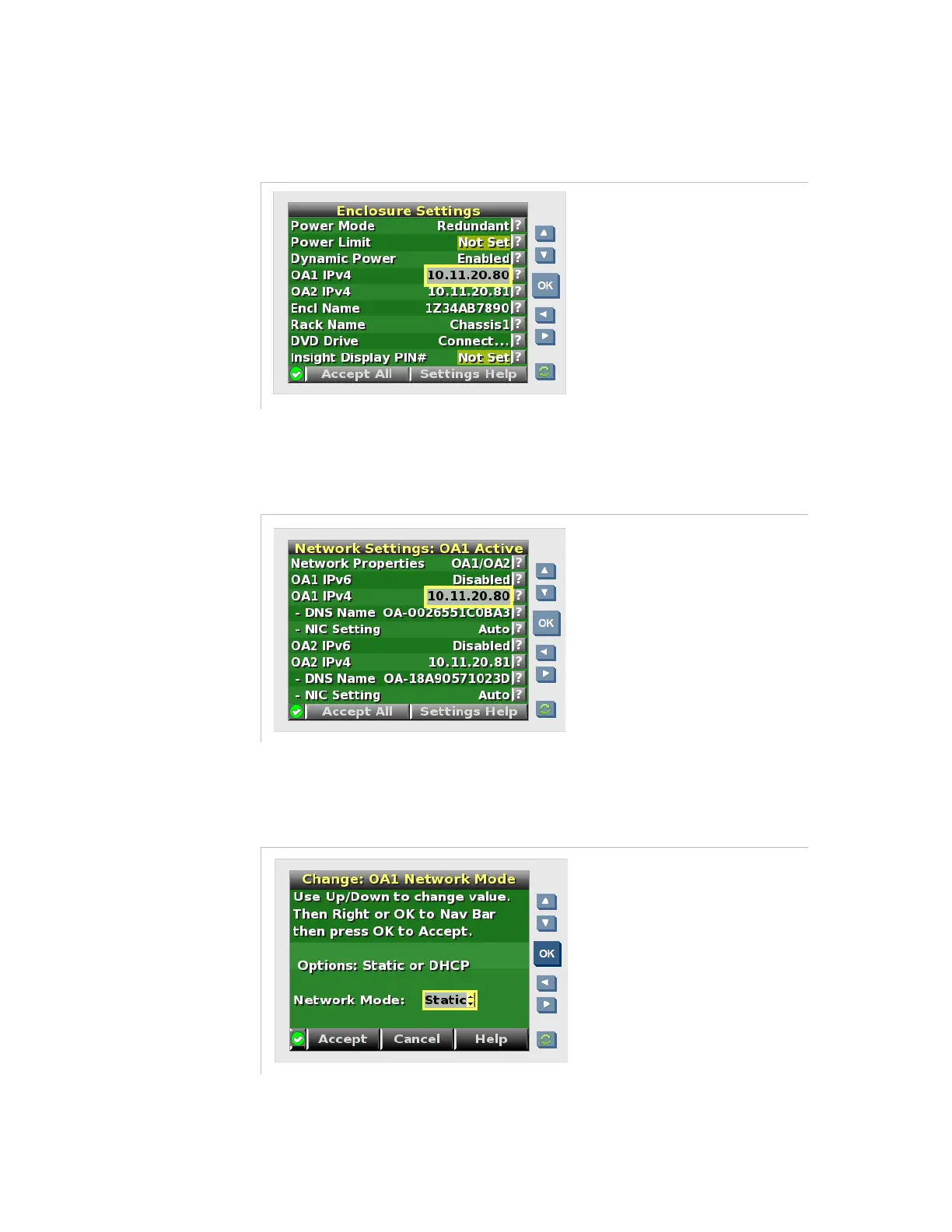 Figure 7-12. Electra VS front panel screen – Onboard Administrator network mode