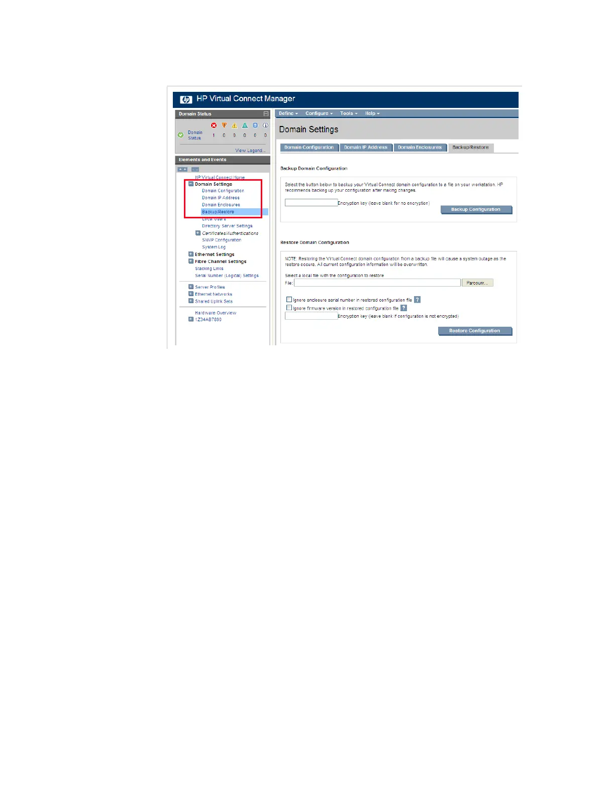 Figure 7-16. HP Virtual Connect Manager interface – Domain settings