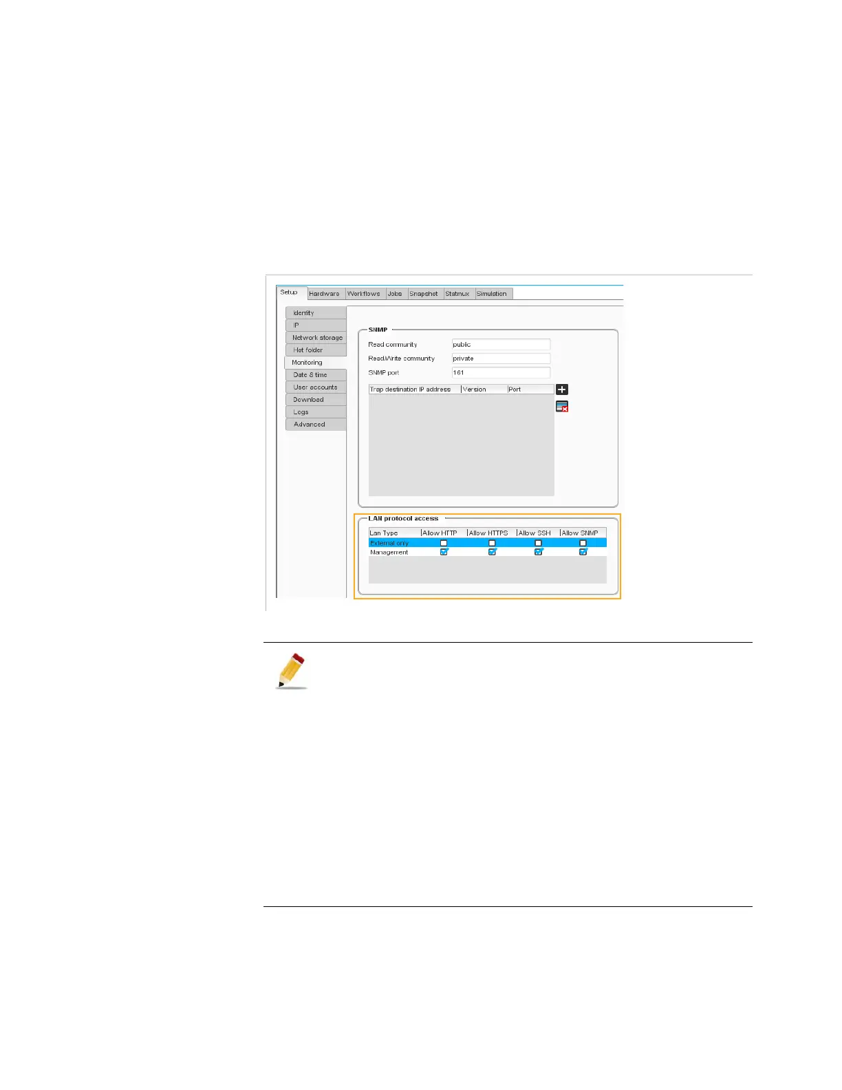allow or block the HTTP, HTTPs, SSH and SNMP connections.