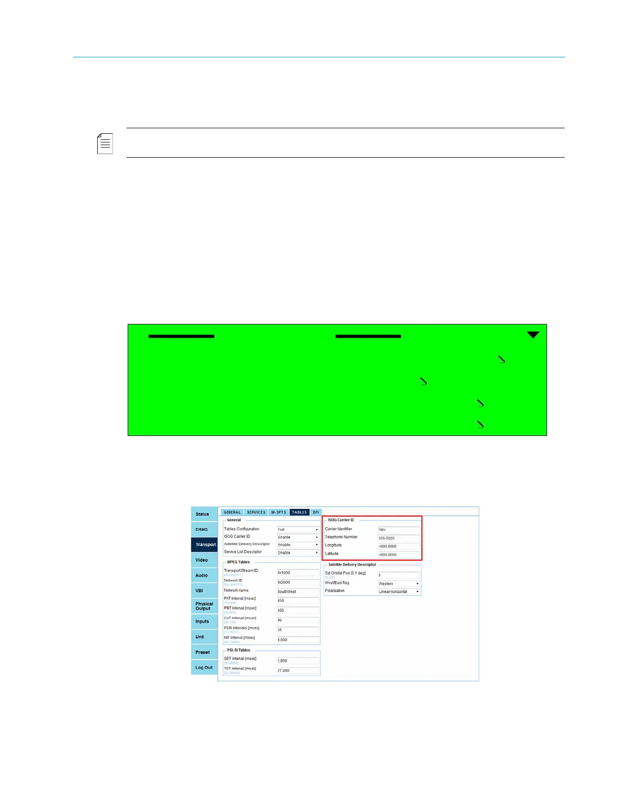 ❖ Navigate Root > Configuration > Transport Stream > Tables > Carrier ID.