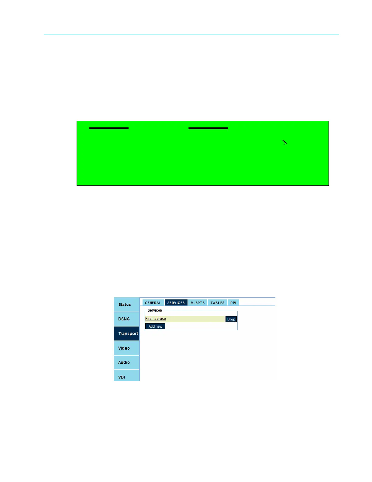 1. Navigate Root > Configuration > Transport Stream > Services > Drop Service.