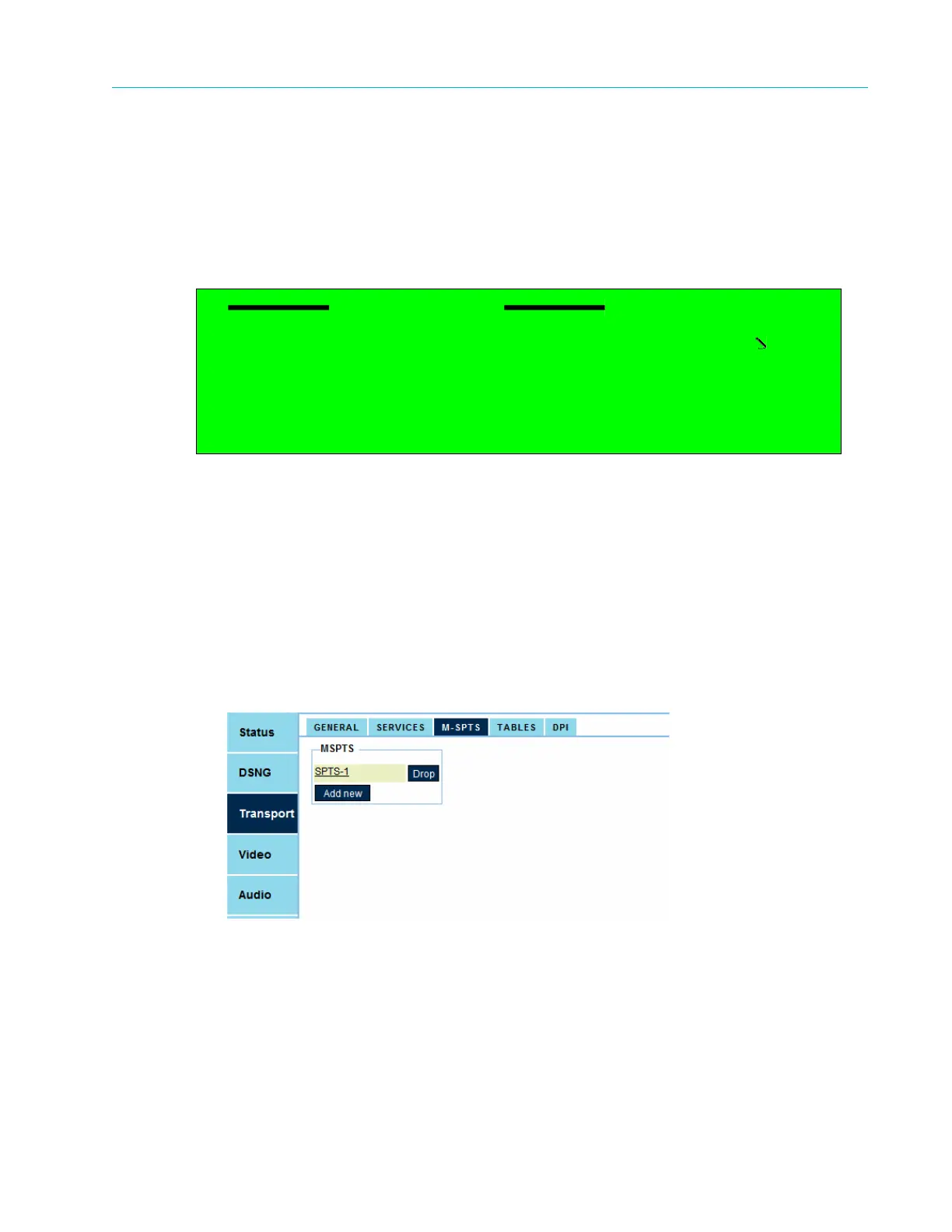 1. Navigate Root > Configuration > Transport Stream > MSPTS > Drop Transport.