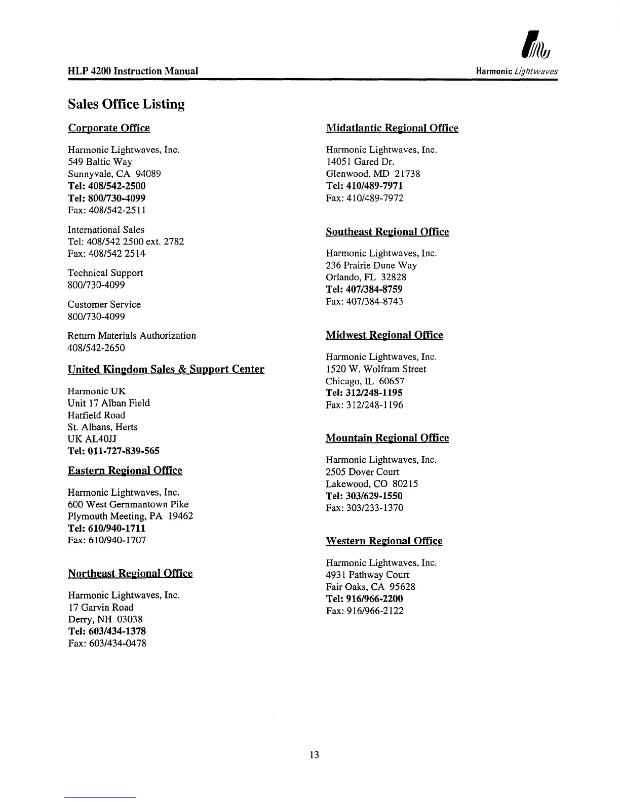 Harmonic Lightwaves, Inc.