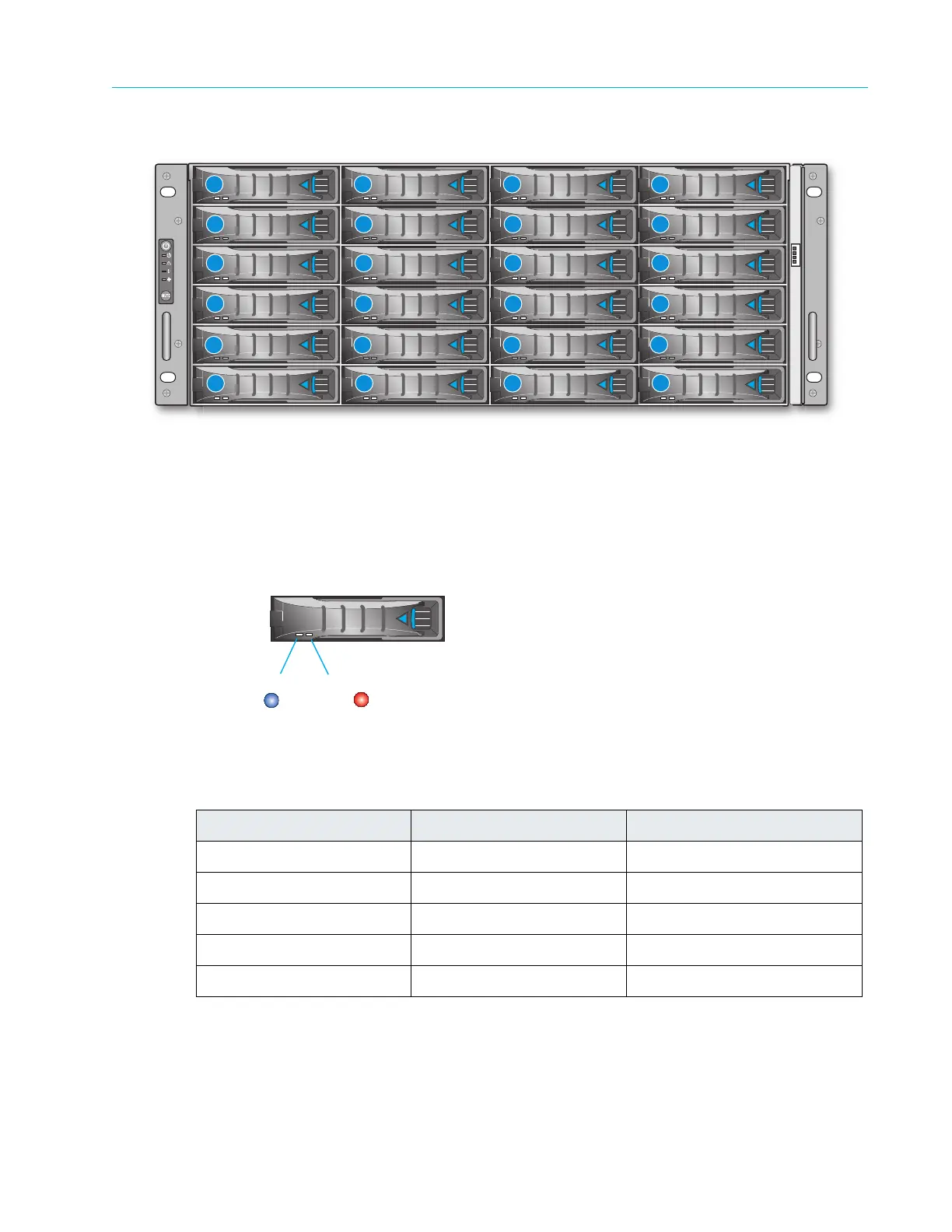 Each drive has an activity LED and status LED. Note that, on the ContentStore 4240, the wink