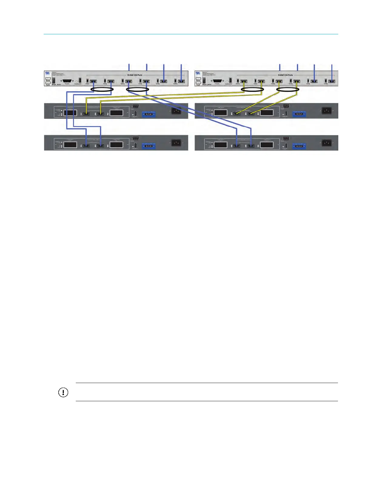 2. Connect CX4 cables to the two 10 GbE ports on the back of rack one’s second switch.