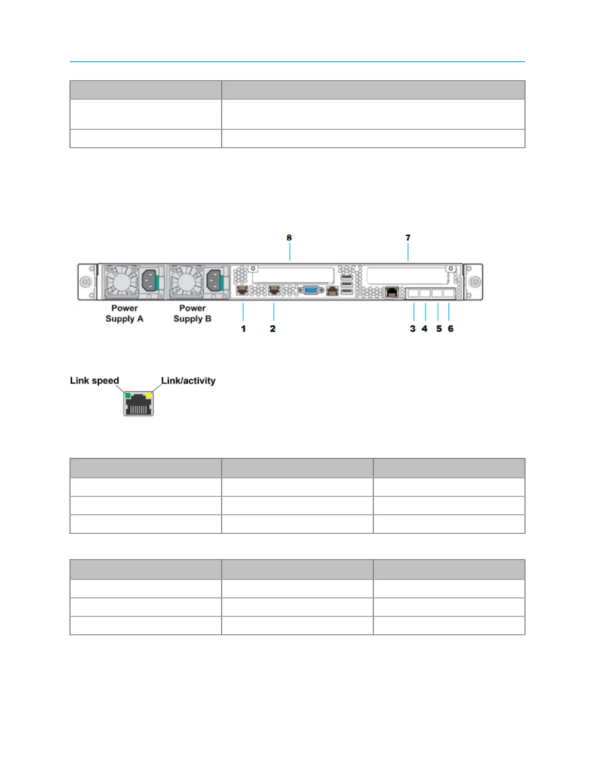 A diagram of the LED states for the Gigabit Ethernet ports.