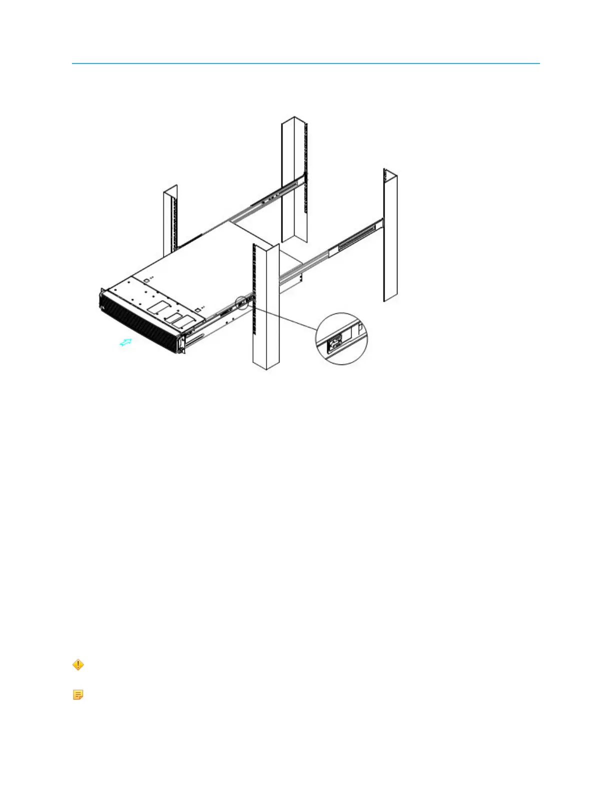 2. Install the chassis to the fixed slides by pulling the release button in the inner member to release the