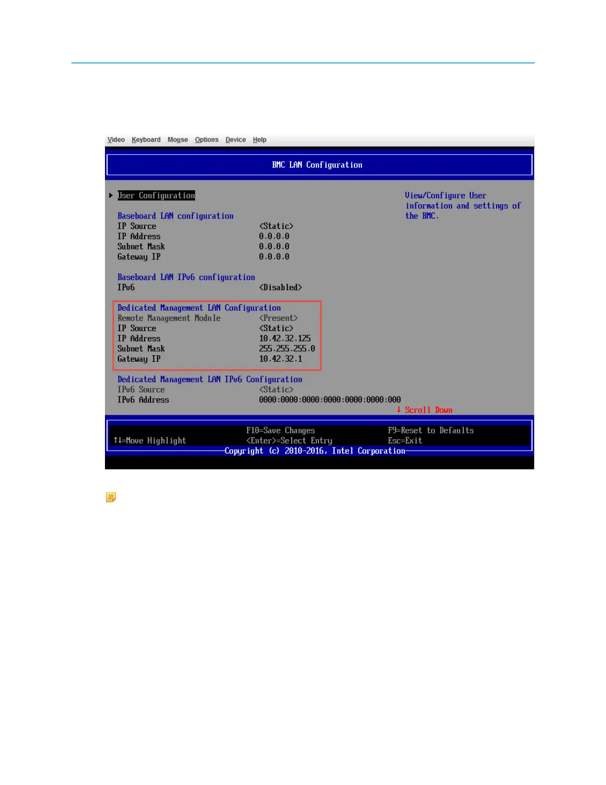 c. In the BMC LAN Configuration screen, configure the IP Address under Dedicated