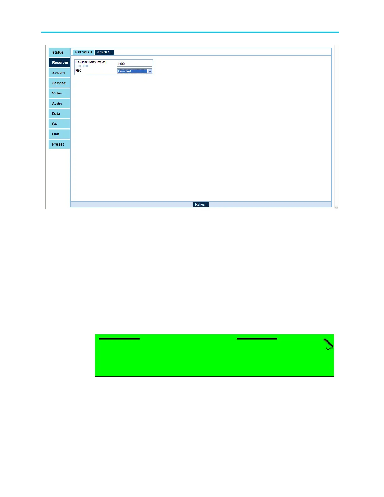 Figure 6-7: DVB-IP Receiver – General Parameters Menu Screen