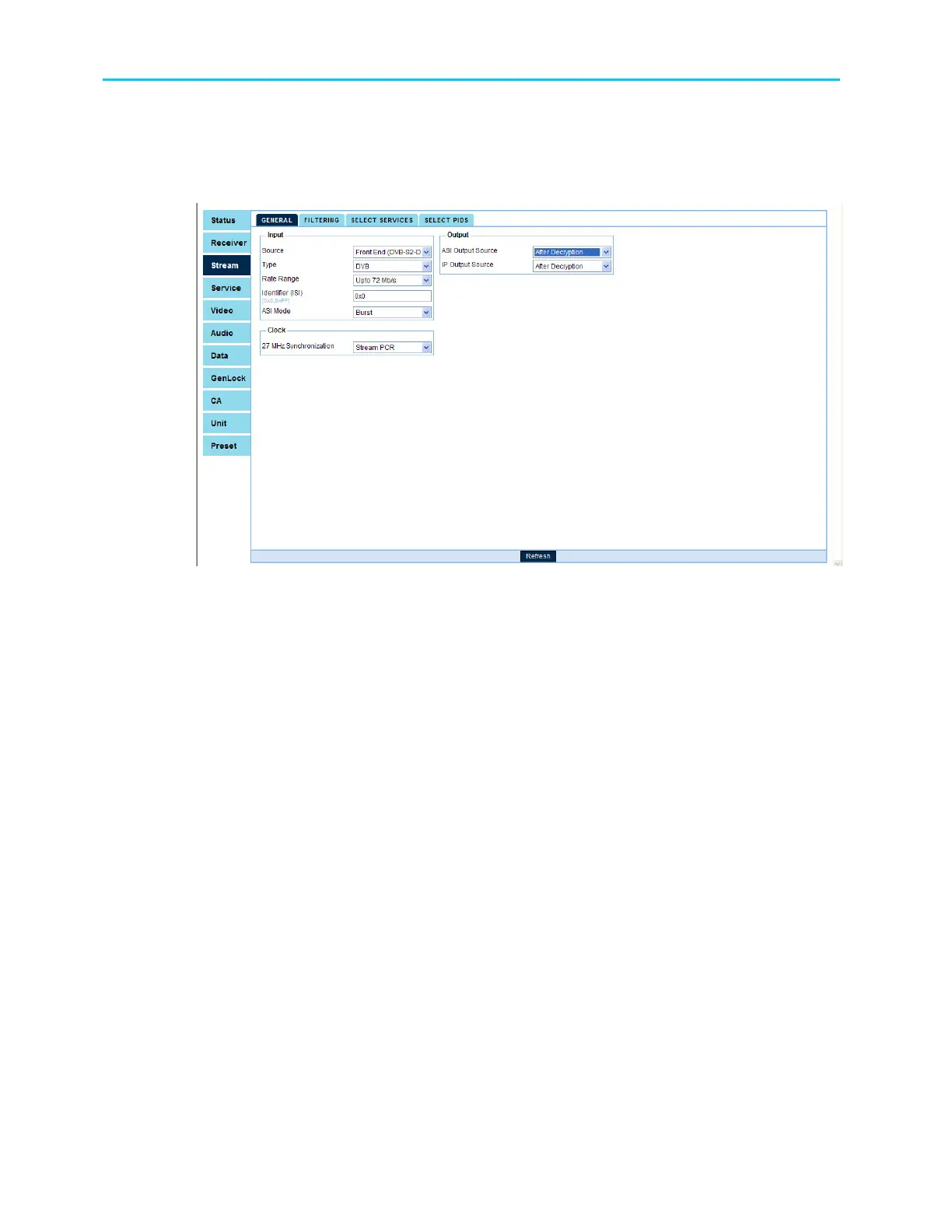 Stream Output configuration, detailed in paragraph 7.3.