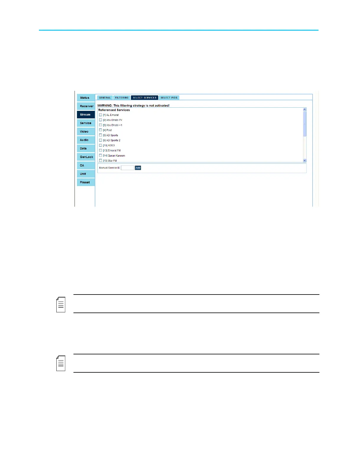 • Manual Service ID - This parameter allow the user to manually add service-to-filter by