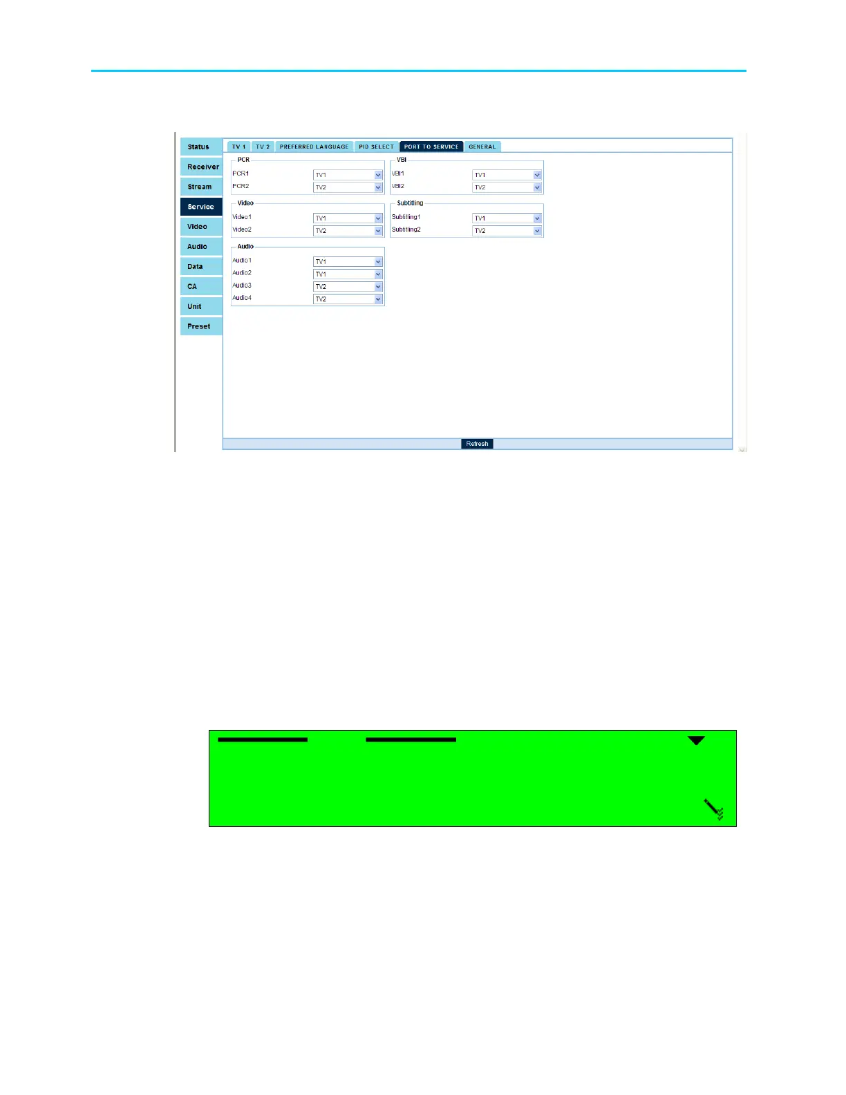 • TV1 (and TV2, when available) – This mode indicates that the elementary stream is