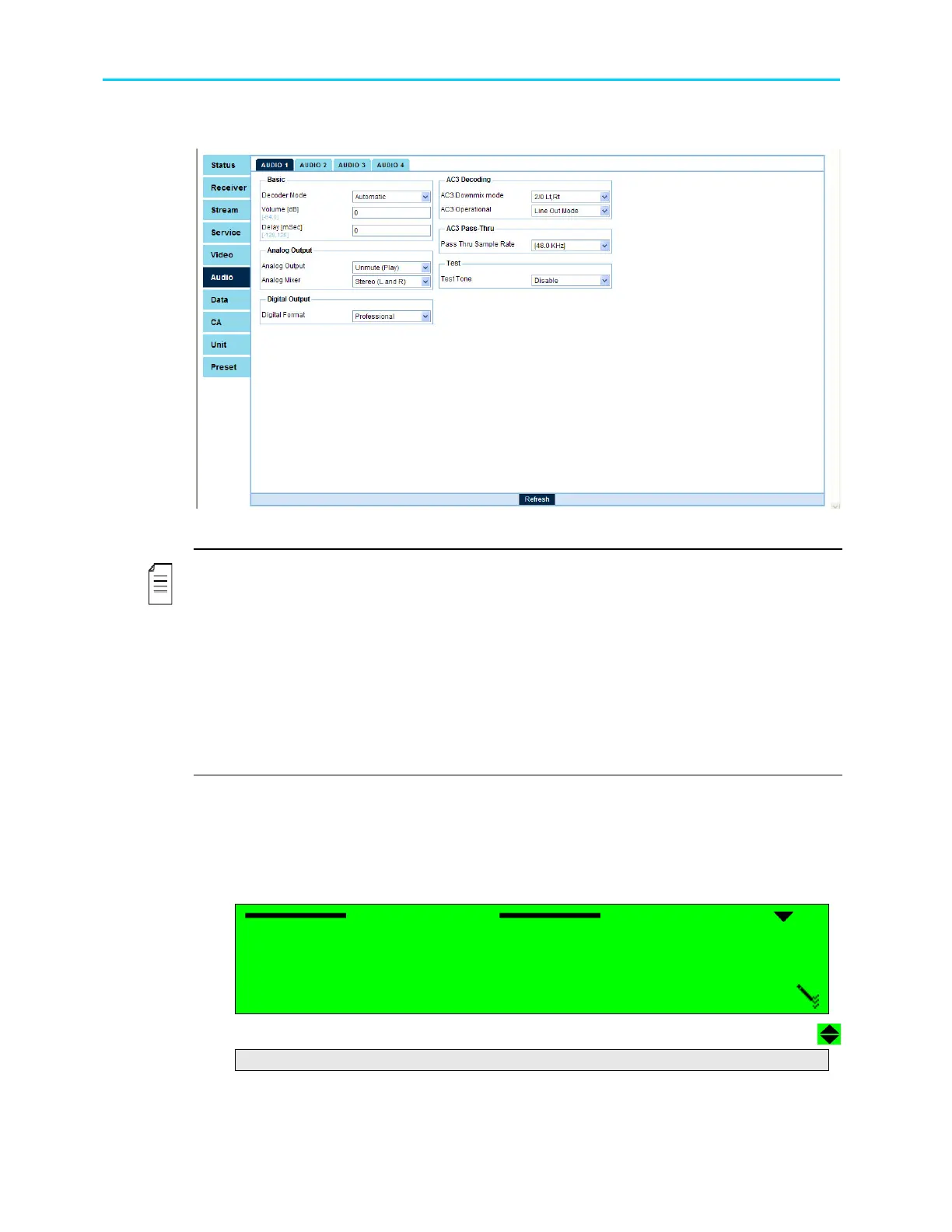The Audio Decoder mode option allows the user setting the following parameters for an
